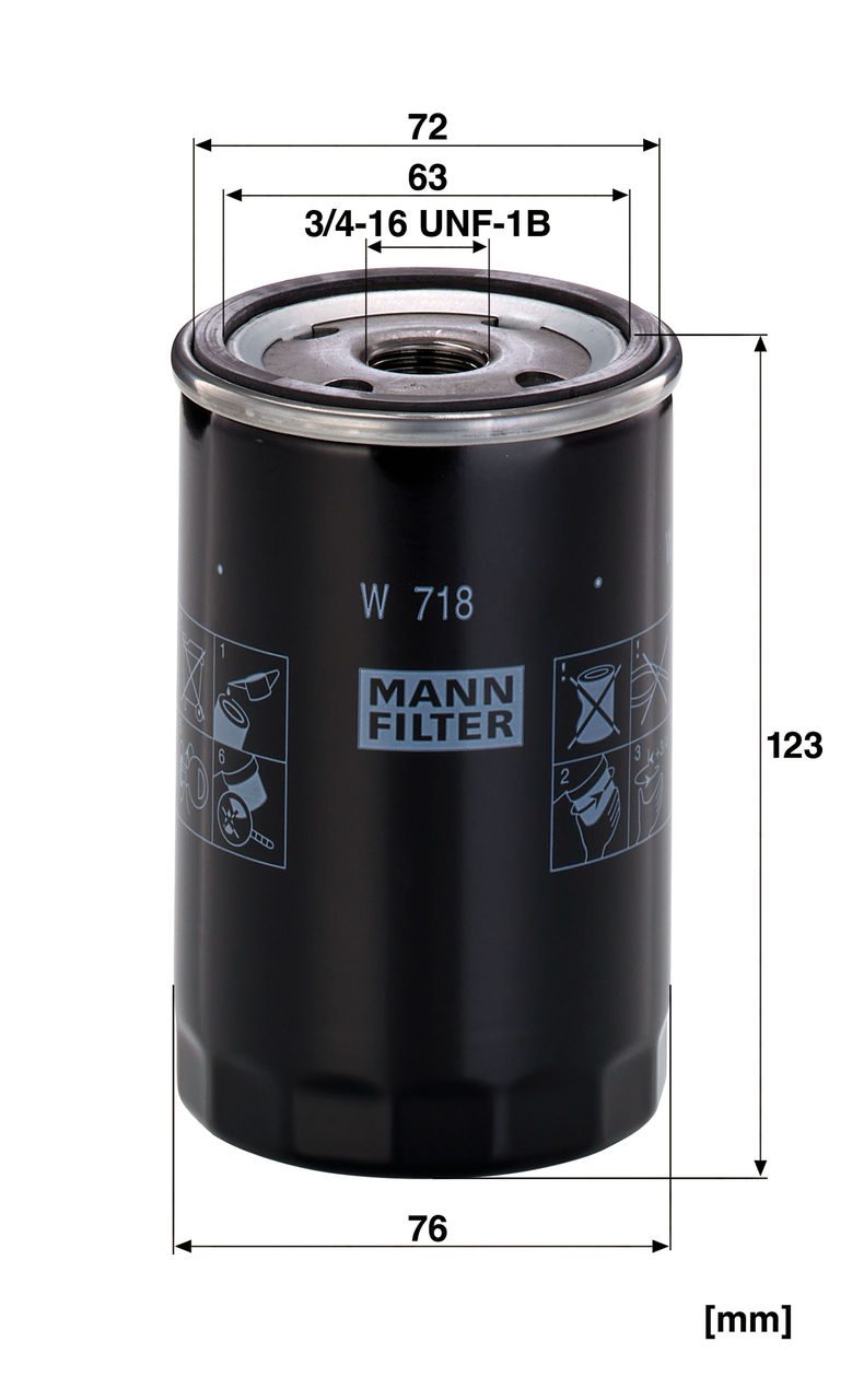 MANN-FILTER oil filters: Top filtration performance and optimal cleaning protect the engine against wear caused by impurities and combustion residues in the oil. Filter media and high-quality sealing materials that are individually tailored to the intended application offer optimum protection over the entire maintenance interval.Specification
