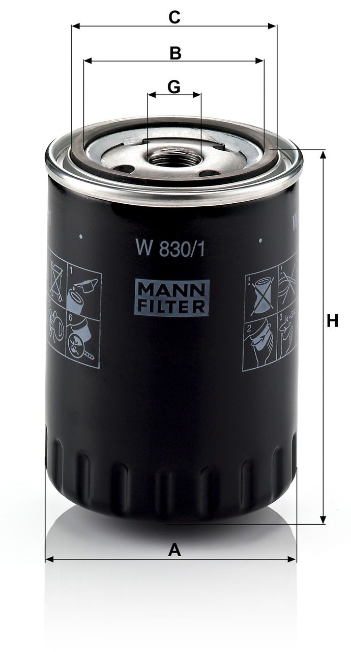 Mann Filter W 830/1 Oil Filter | Replaces the Bosch 0 451 103 290
