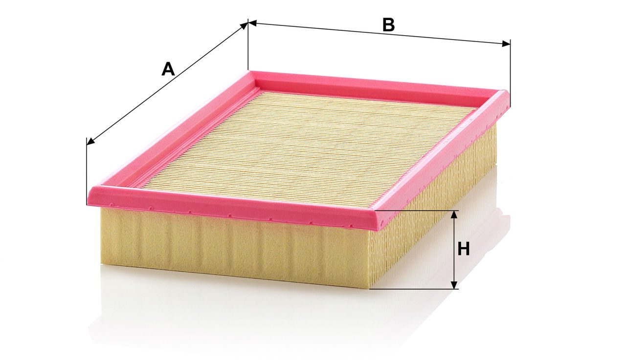 High-quality MANN-FILTER air filters for clean air intake and optimum protection for your engine, mass air flow sensor & other sensitive components / They meet requirements of modern engine technology. Highest dirt holding capacity and dirt separation efficiency, low flow resistance and high pleat stability ensure functional reliability during the entire service interval.