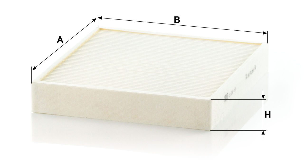 High-quality MANN-FILTER cabin filters offer almost 100% protection against particles such as pollen, diesel soot and tyre abrasion - for a feel-good climate in the vehicle interior and protection of the air conditioning system. Exact fit and perfect tightness ensure constant filtration performance during the entire service interval / Optimum vehicle interior ventilation due to the high air flow capacity.