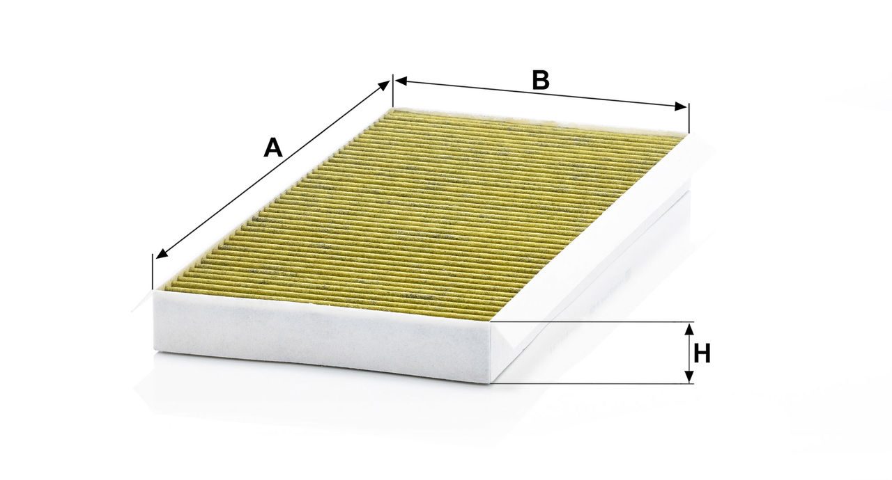 Biofunctional MANN-FILTER FreciousPlus cabin air filters - nearly 100% protection against nitrogen oxides, dust, allergens and mould - harmful gases and unpleasant odours are also eliminated and virus aerosols filtered. The three-layer filter technology absorbs almost 100% of allergens, reduces the growth of molds and bacteria by more than 98% and stops fine dust almost completely.Specification