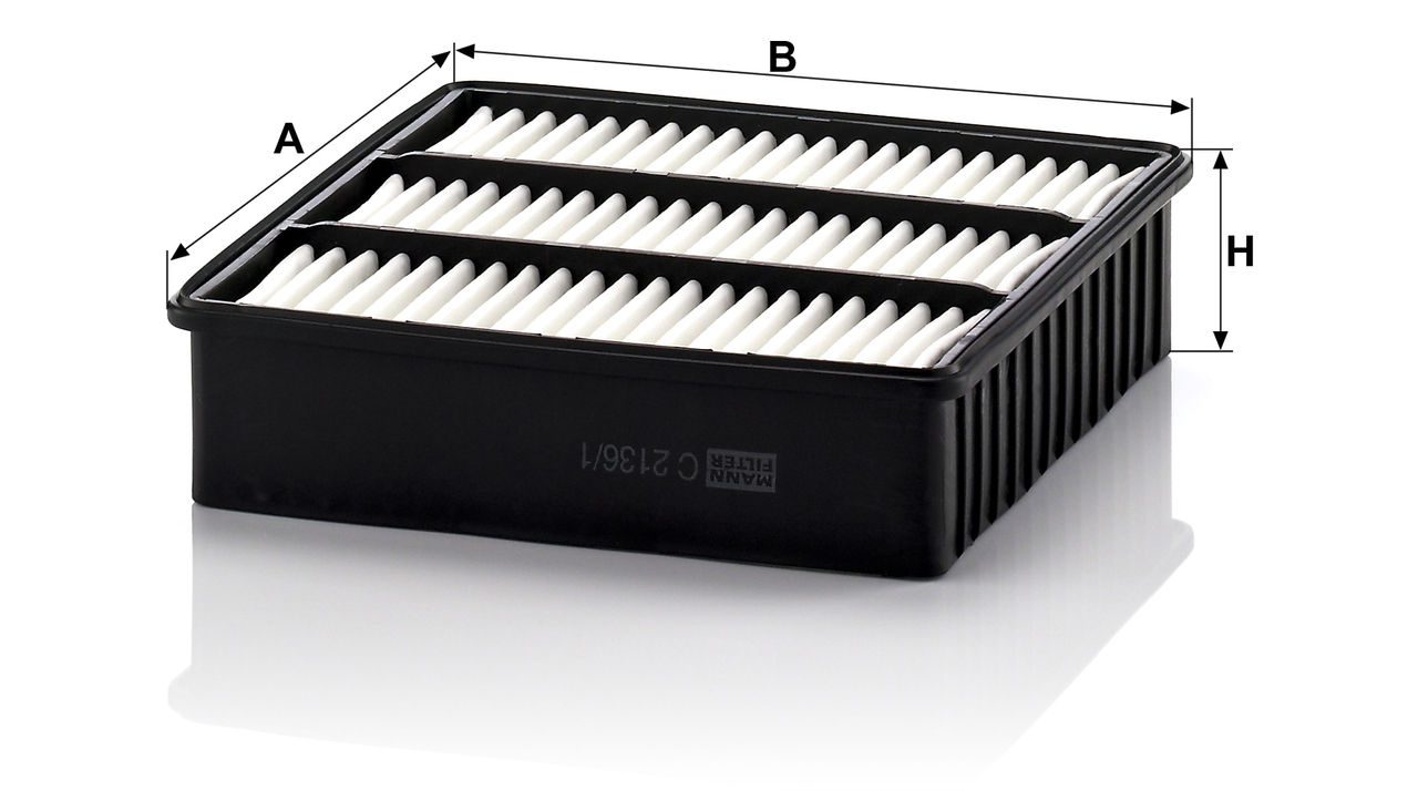 High-quality MANN-FILTER air filters for clean air intake and optimum protection for your engine, mass air flow sensor & other sensitive components / They meet requirements of modern engine technology. Highest dirt holding capacity and dirt separation efficiency, low flow resistance and high pleat stability ensure functional reliability during the entire service interval.