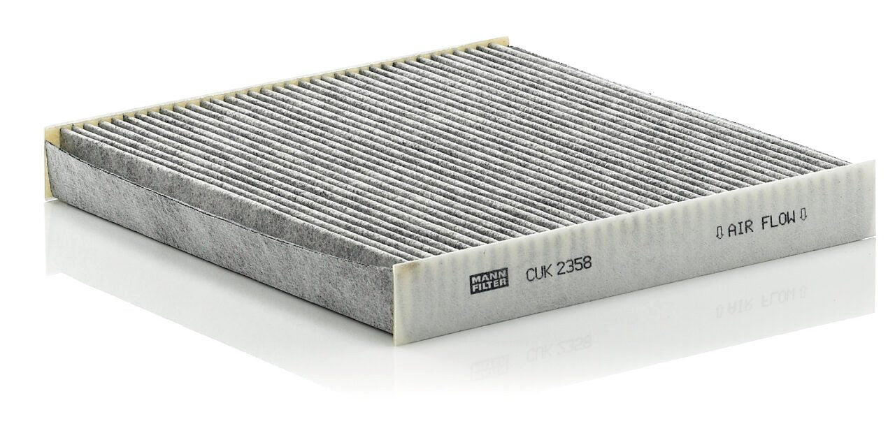High-quality MANN-FILTER cabin filters with active carbon - nearly 100% protection from particles like pollen, diesel soot & tyre abrasion / Additional protection from harmful gases & unpleasant odour. The trated highly-effective activated carbon gives protection against harmful gases such as ozone, nitrogen oxide or sulphur dioxide and eliminates unpleasant odours during the entire service interval.
