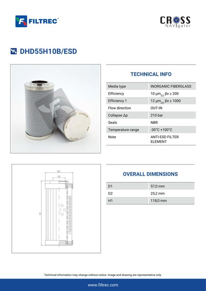 The efficiency of the element is shown using the Micron (µ) and Beta (β) ratings. The micron rating indicates the size of the particle being filtered and the beta rating the efficiency, calculated as 1/β.