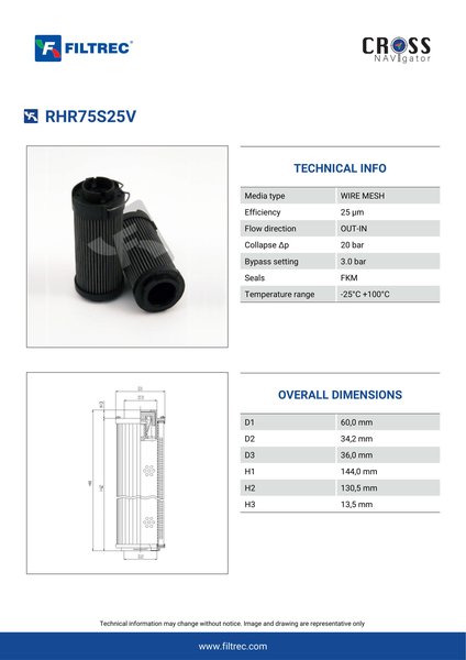 The efficiency of the element is shown using the Micron (µ) and Beta (β) ratings. The micron rating indicates the size of the particle being filtered and the beta rating the efficiency, calculated as 1/β.