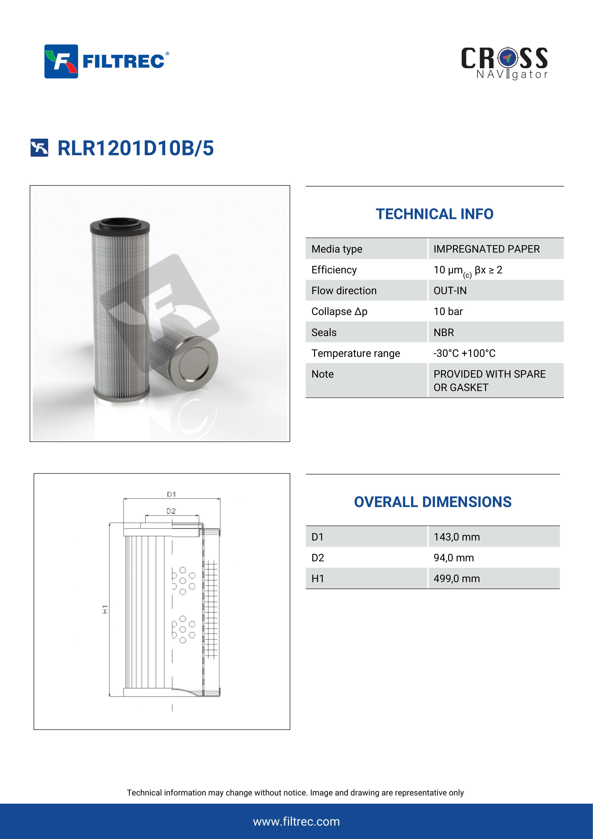 Genuine Filtrec RLR1201D10B/5. This Filtrec element is designed to meet or exceed the quality and performance of brand OEM’s ensuring superior filtration performance and long-lasting durability.
