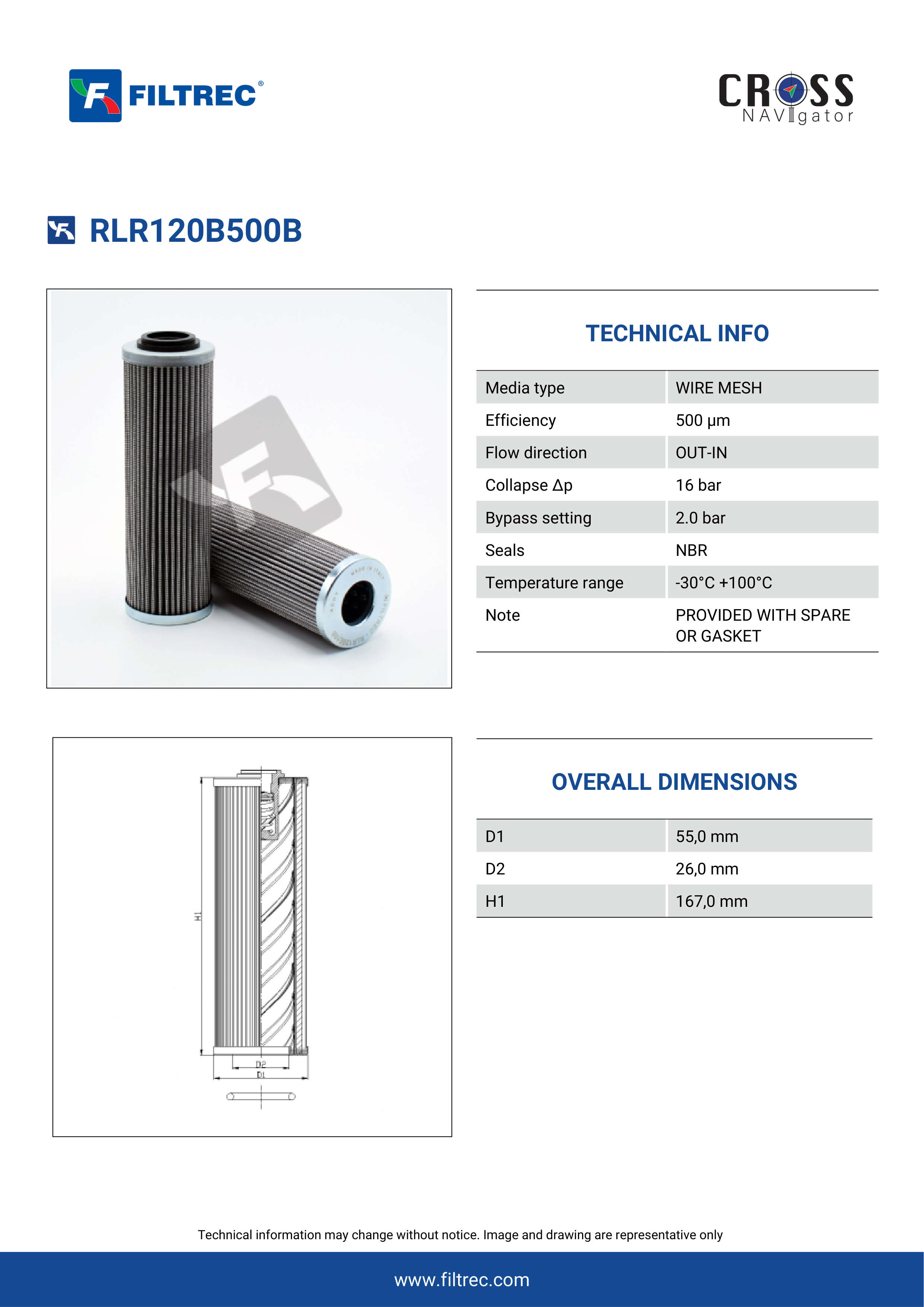 Genuine Filtrec RLR120B500B. This Filtrec element is designed to meet or exceed the quality and performance of brand OEM’s ensuring superior filtration performance and long-lasting durability.