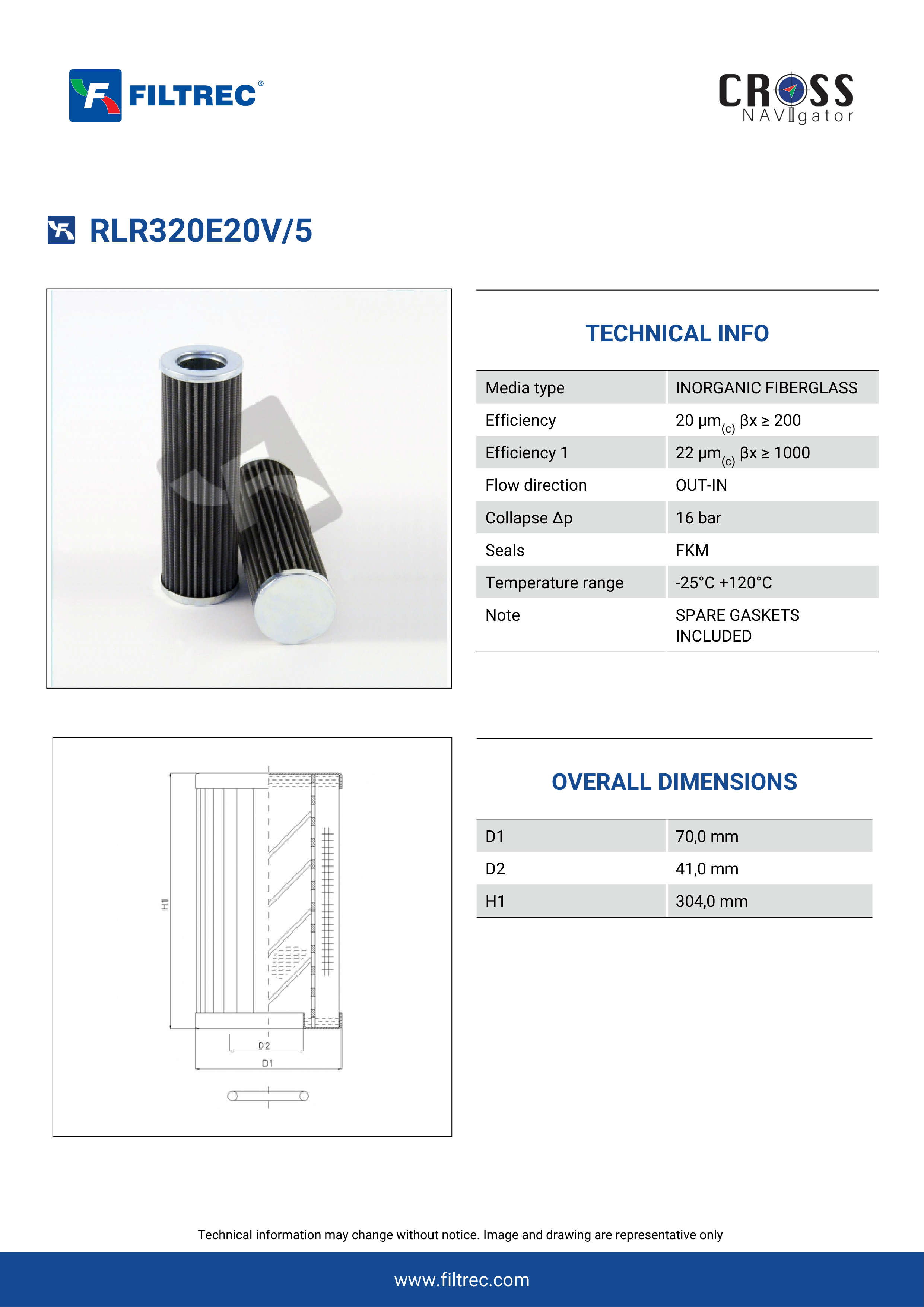 Genuine Filtrec RLR320E20V/5. This Filtrec element is designed to meet or exceed the quality and performance of brand OEM’s ensuring superior filtration performance and long-lasting durability.