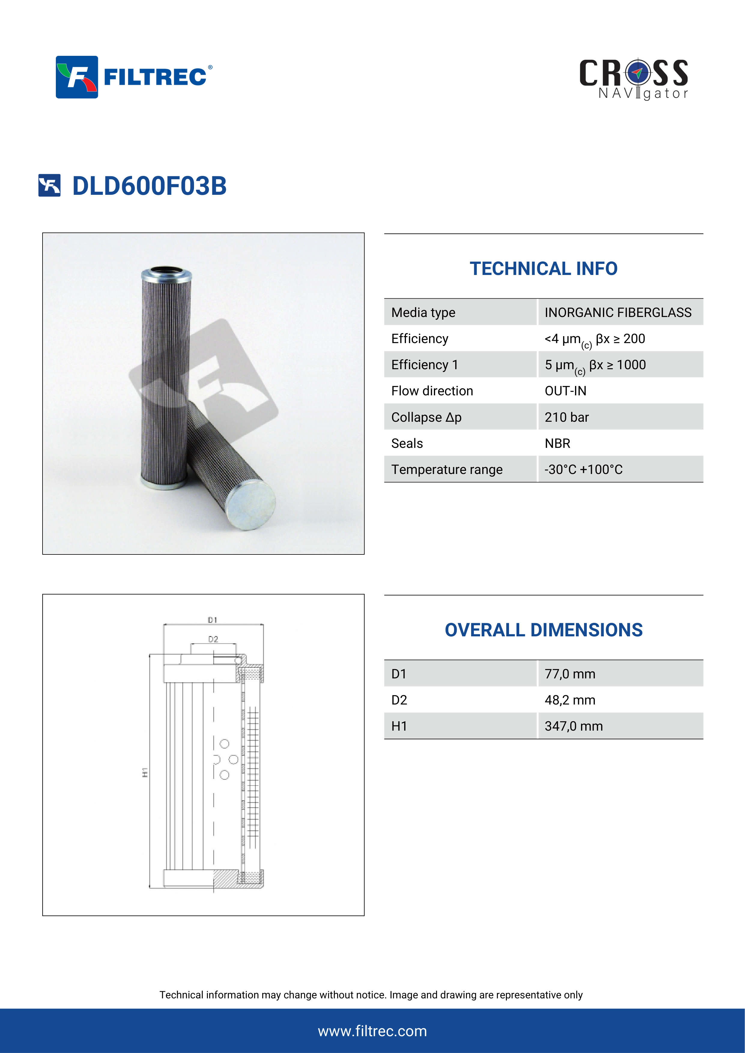 Genuine Filtrec DLD600F03B. This Filtrec element is designed to meet or exceed the quality and performance of brand OEM’s ensuring superior filtration performance and long-lasting durability.