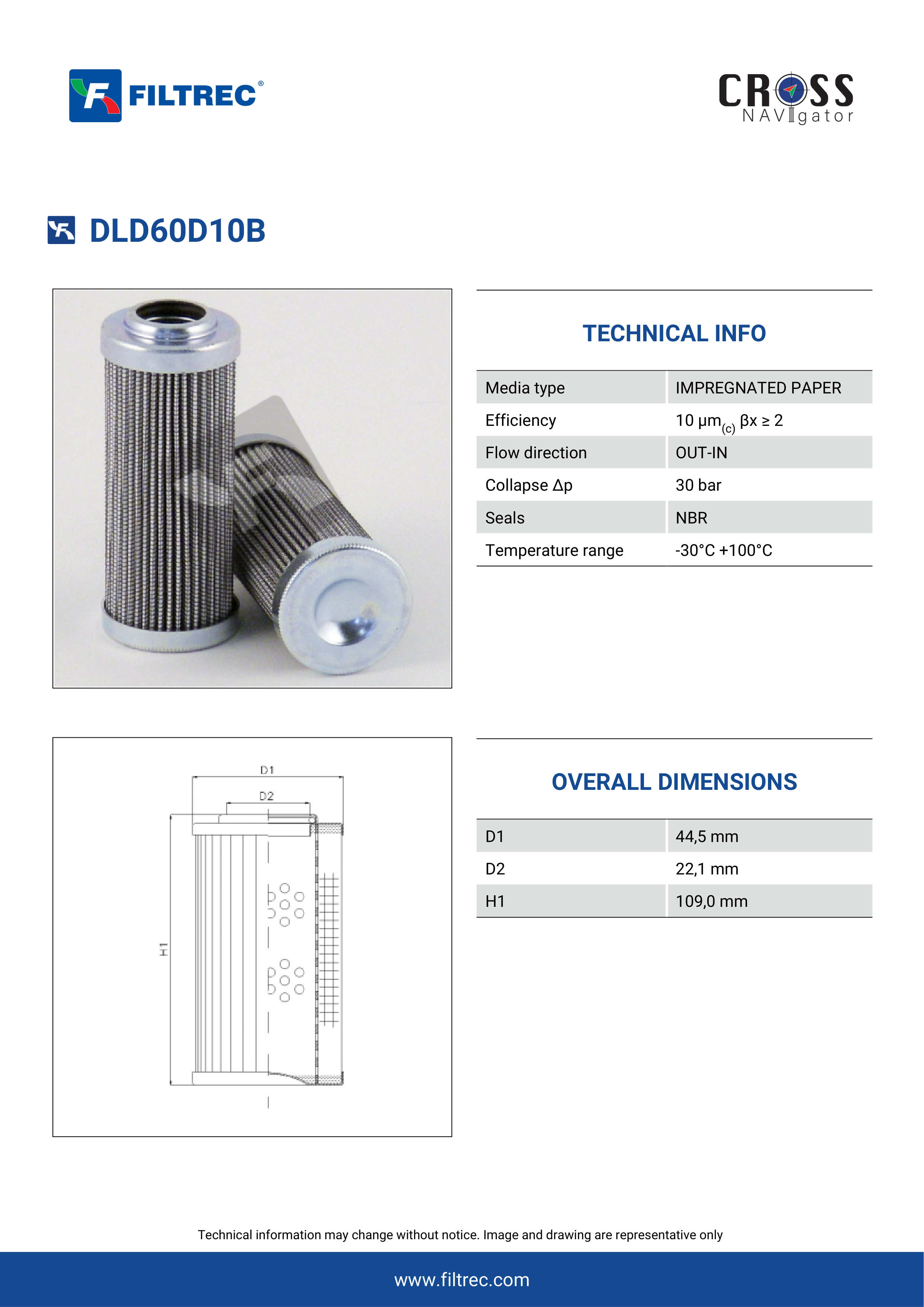 Genuine Filtrec DLD60D10B. This Filtrec element is designed to meet or exceed the quality and performance of brand OEM’s ensuring superior filtration performance and long-lasting durability.