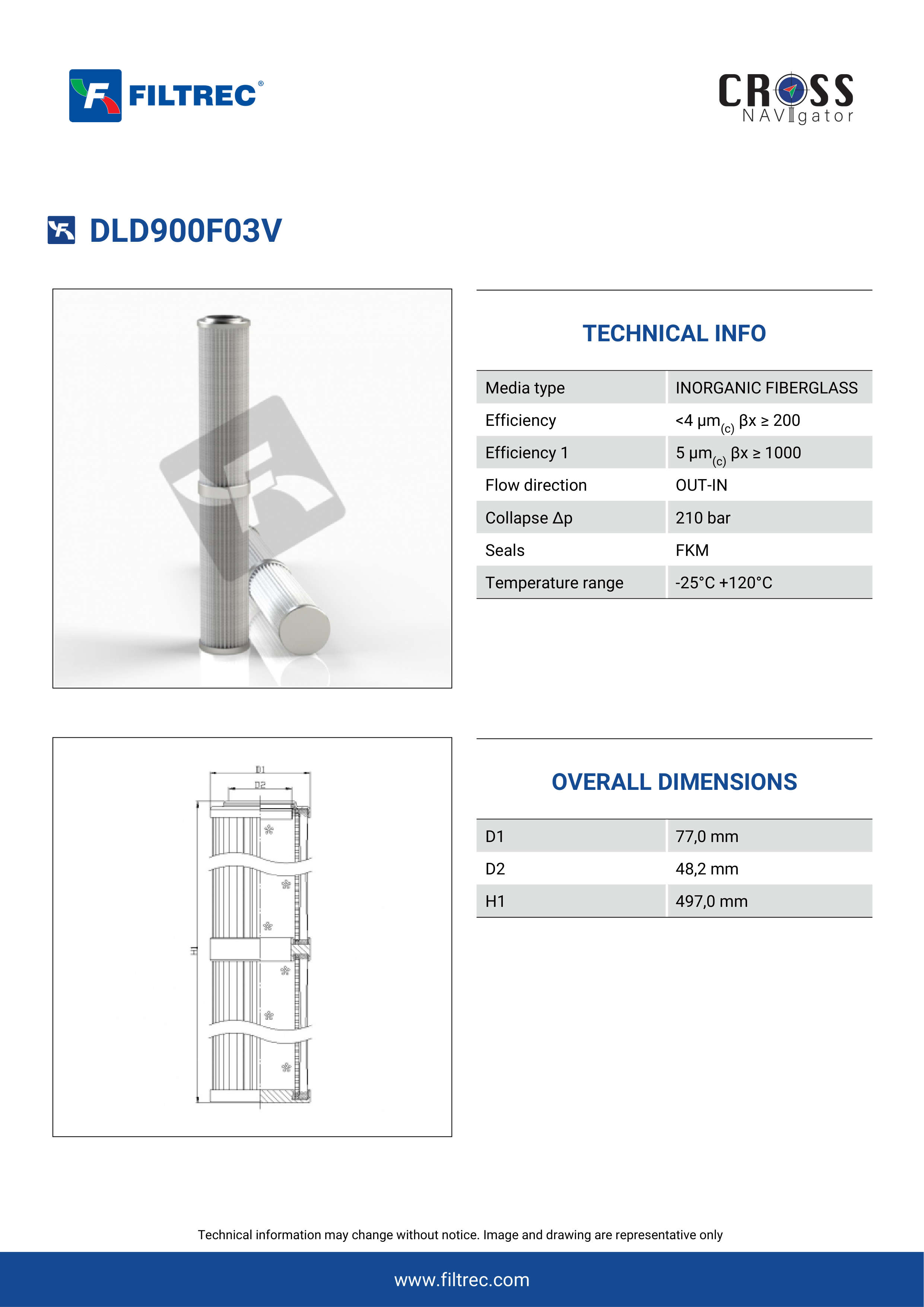 Genuine Filtrec DLD900F03V. This Filtrec element is designed to meet or exceed the quality and performance of brand OEM’s ensuring superior filtration performance and long-lasting durability.