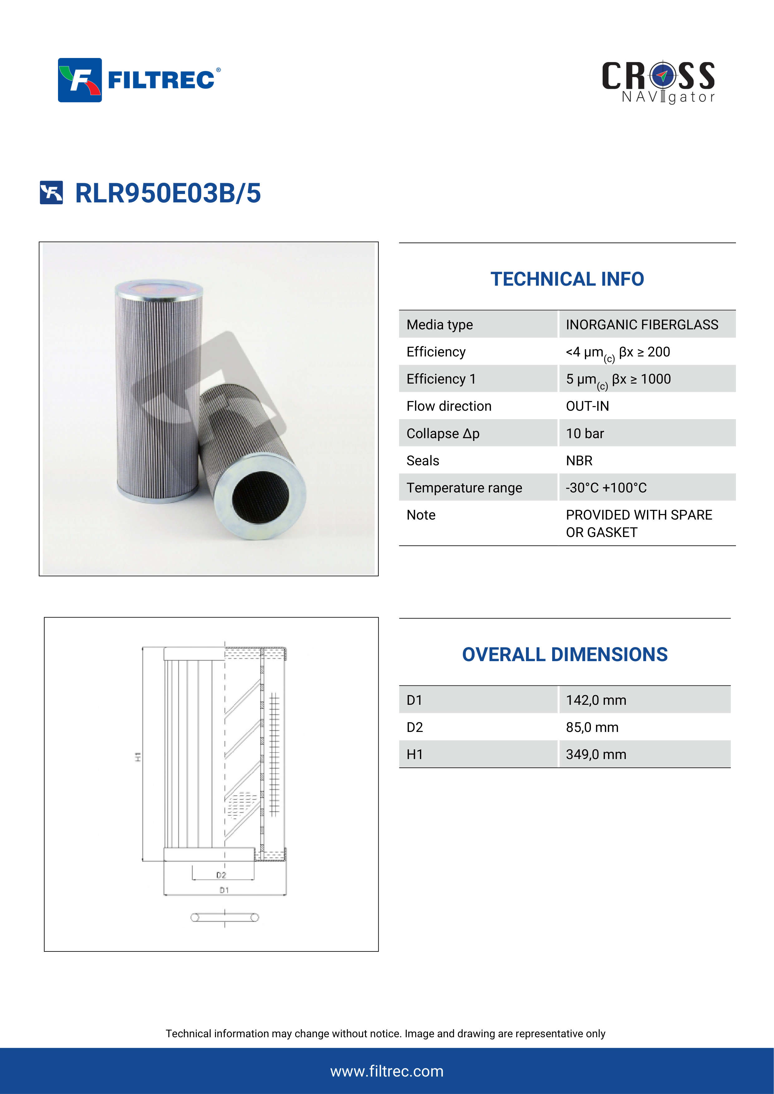 Genuine Filtrec RLR950E03B/5. This Filtrec element is designed to meet or exceed the quality and performance of brand OEM’s ensuring superior filtration performance and long-lasting durability.