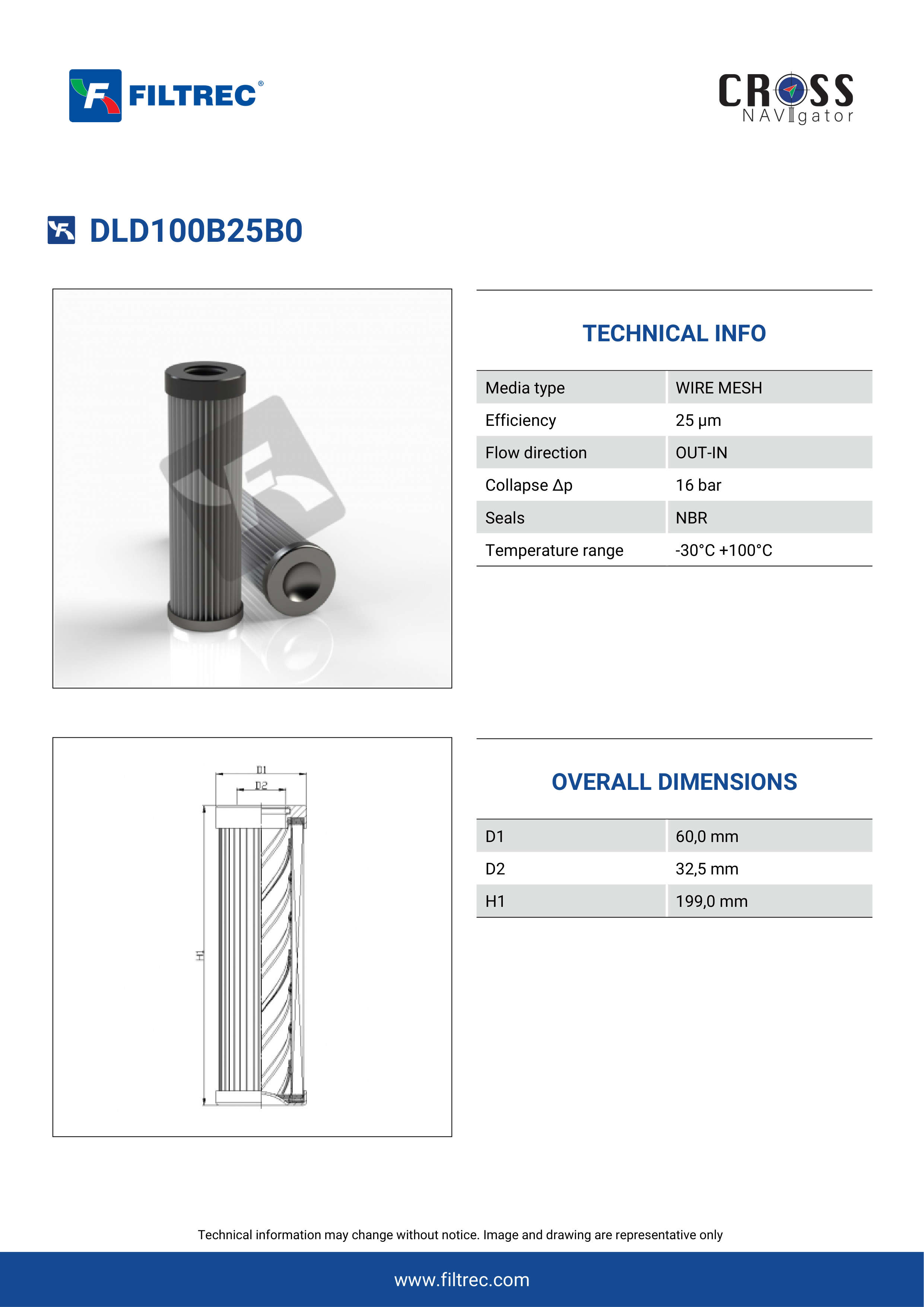 Genuine Filtrec DLD100B25B0. This Filtrec element is designed to meet or exceed the quality and performance of brand OEM’s ensuring superior filtration performance and long-lasting durability.