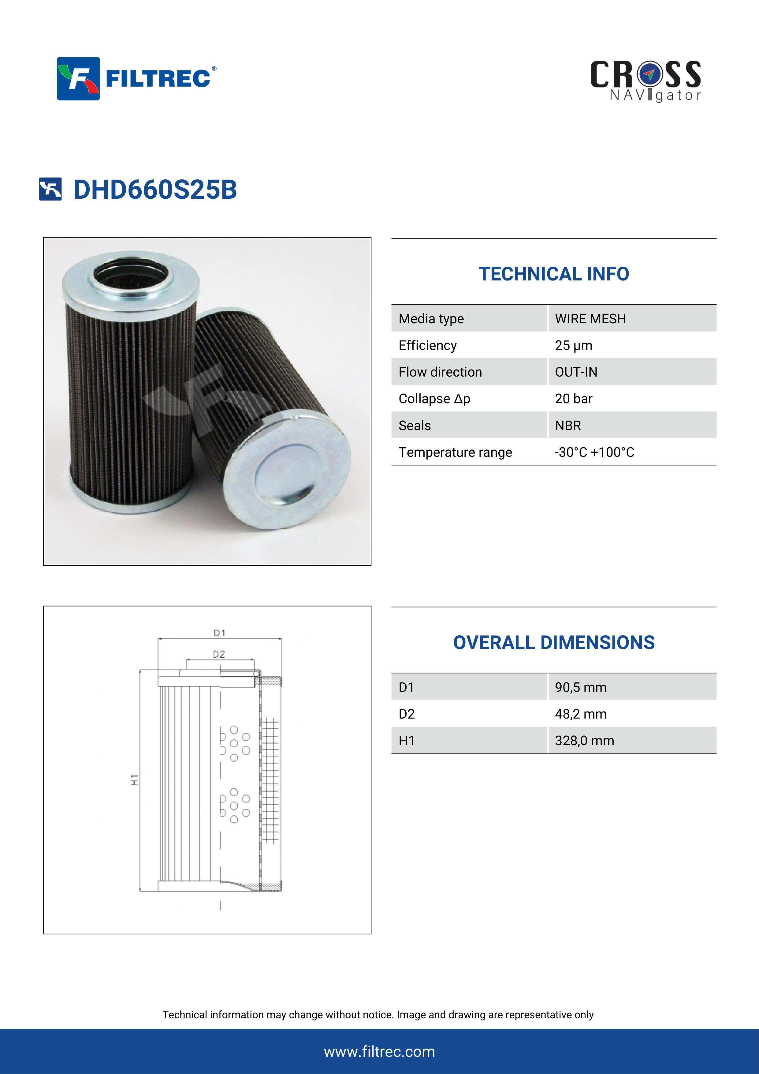 The efficiency of the element is shown using the Micron (µ) and Beta (β) ratings. The micron rating indicates the size of the particle being filtered and the beta rating the efficiency, calculated as 1/β.