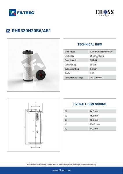 Engineered with their high performance media and a durable design, the RHR330N20B6/AB1 provides reliable and consistent performance over its lifespan, even in harsh operating environments. When you order from FilterFinder, you can trust that you are getting a reliable and high-quality replacement filter that will keep your system running smoothly.