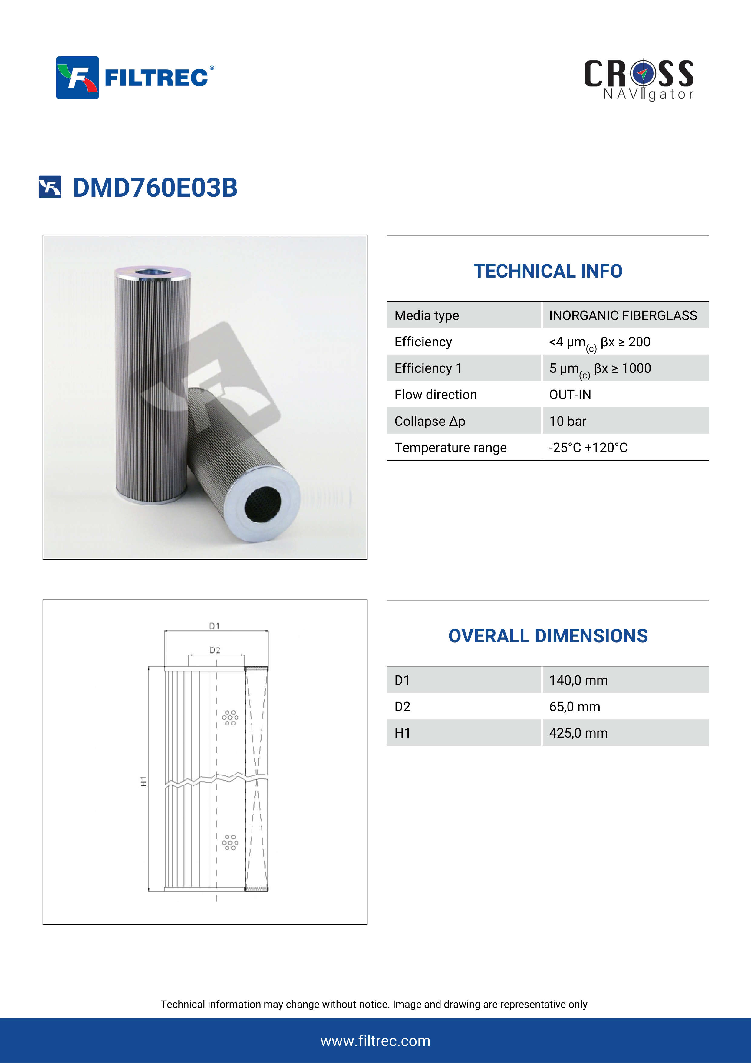 Genuine Filtrec DMD760E03B. This Filtrec element is designed to meet or exceed the quality and performance of brand OEM’s ensuring superior filtration performance and long-lasting durability.