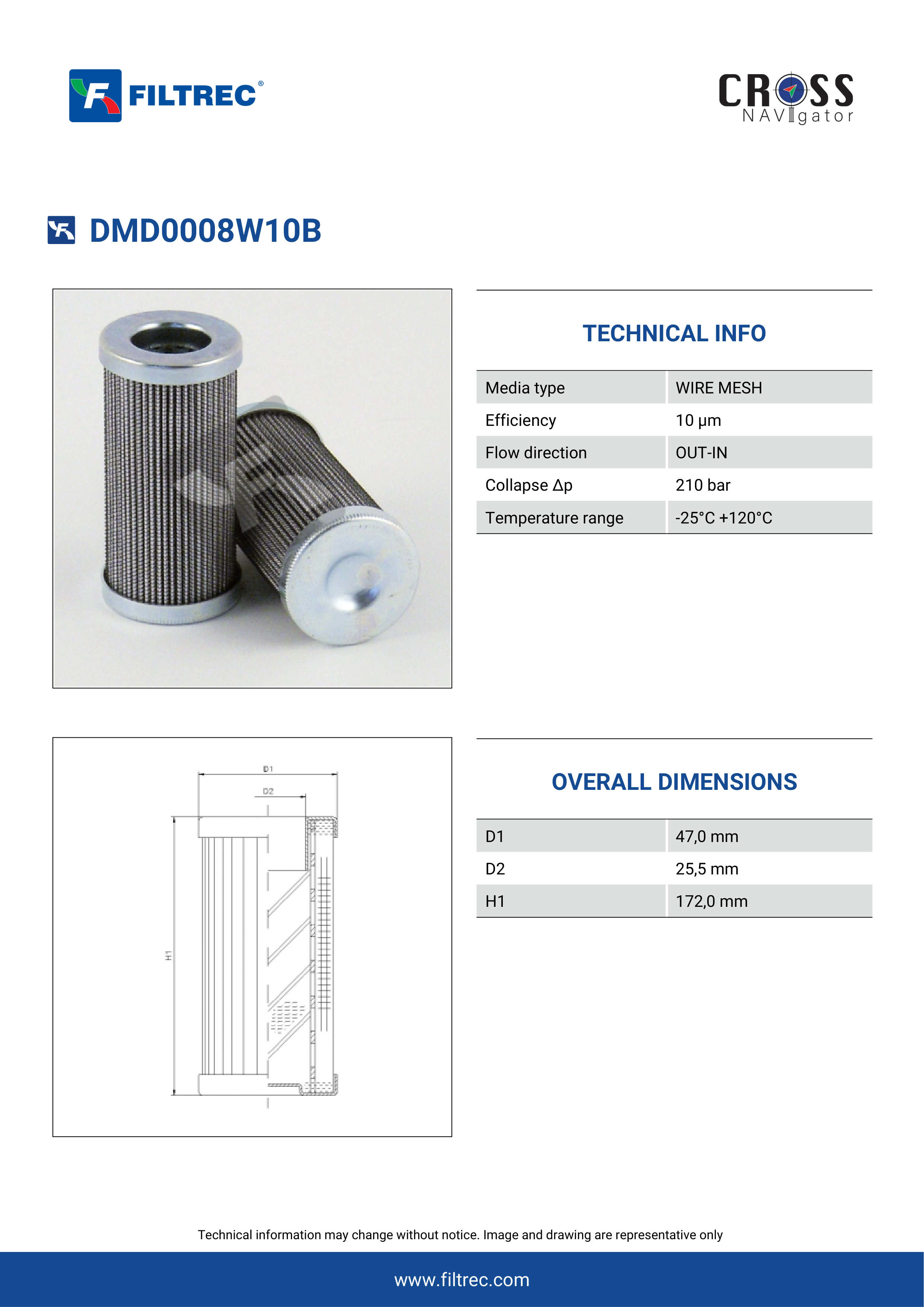 Genuine Filtrec DMD0008W10B. This Filtrec element is designed to meet or exceed the quality and performance of brand OEM’s ensuring superior filtration performance and long-lasting durability.