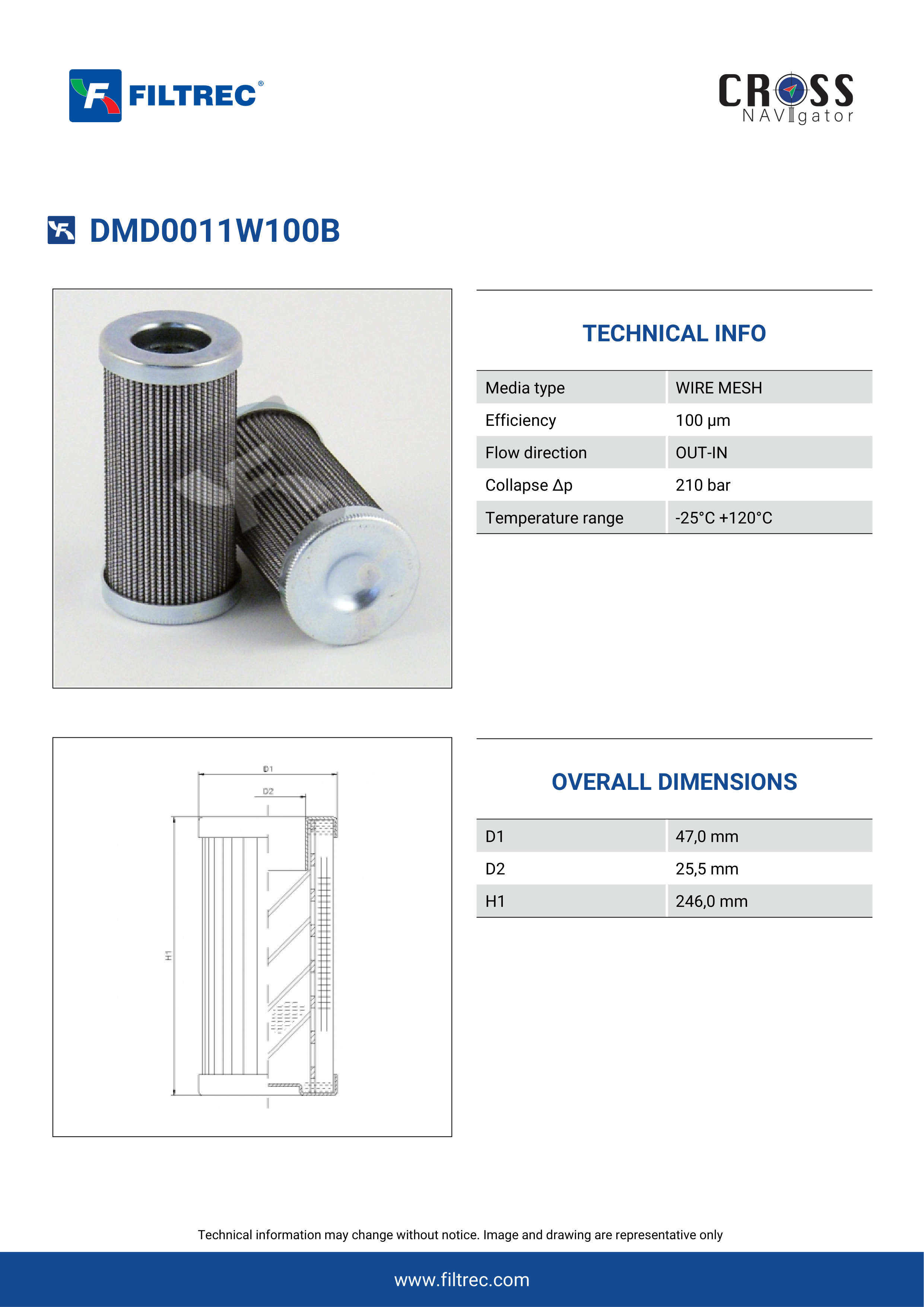 Genuine Filtrec DMD0011W100B. This Filtrec element is designed to meet or exceed the quality and performance of brand OEM’s ensuring superior filtration performance and long-lasting durability.