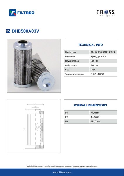 The efficiency of the element is shown using the Micron (µ) and Beta (β) ratings. The micron rating indicates the size of the particle being filtered and the beta rating the efficiency, calculated as 1/β.