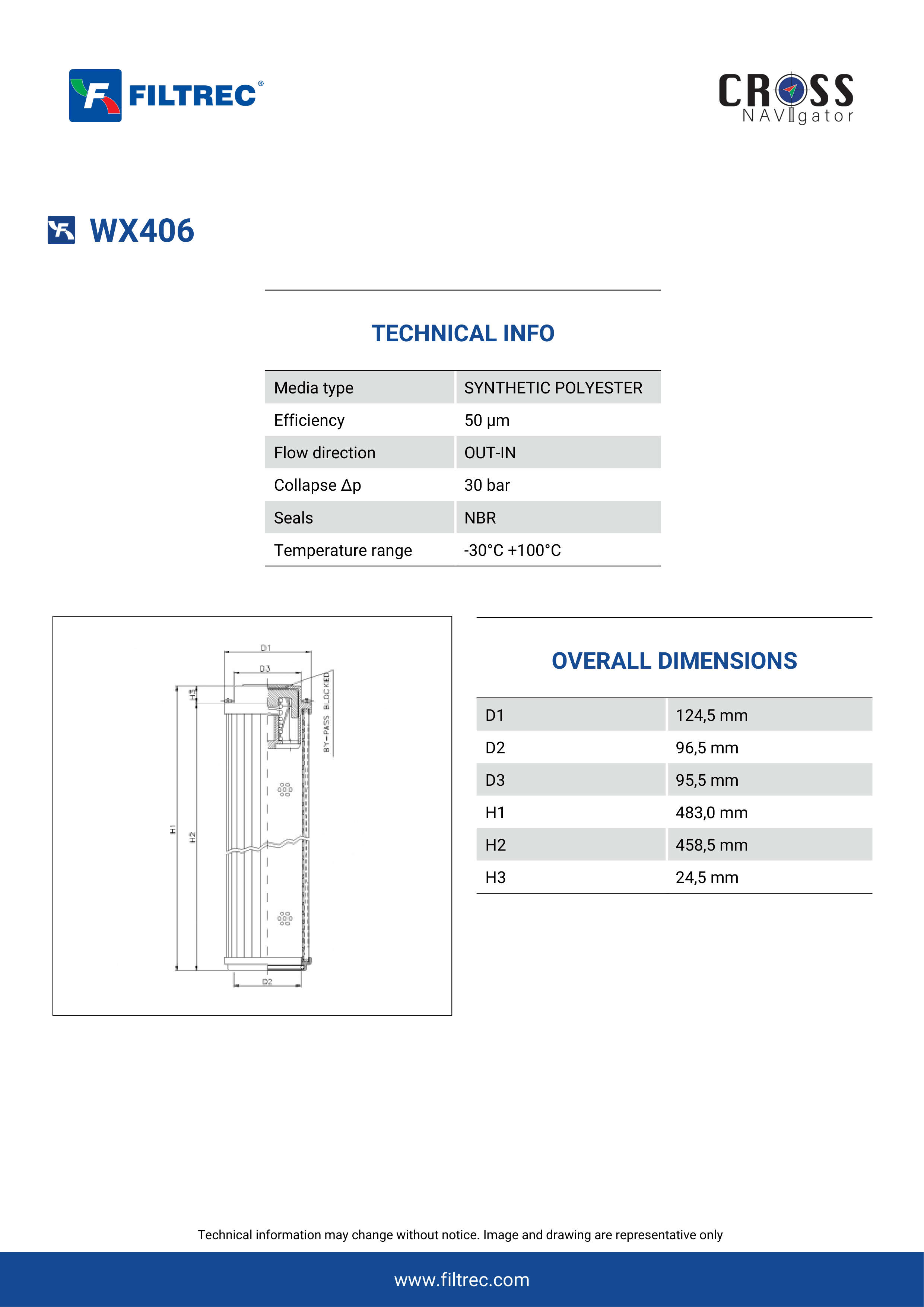Genuine Filtrec WX406. This Filtrec element is designed to meet or exceed the quality and performance of brand OEM’s ensuring superior filtration performance and long-lasting durability.