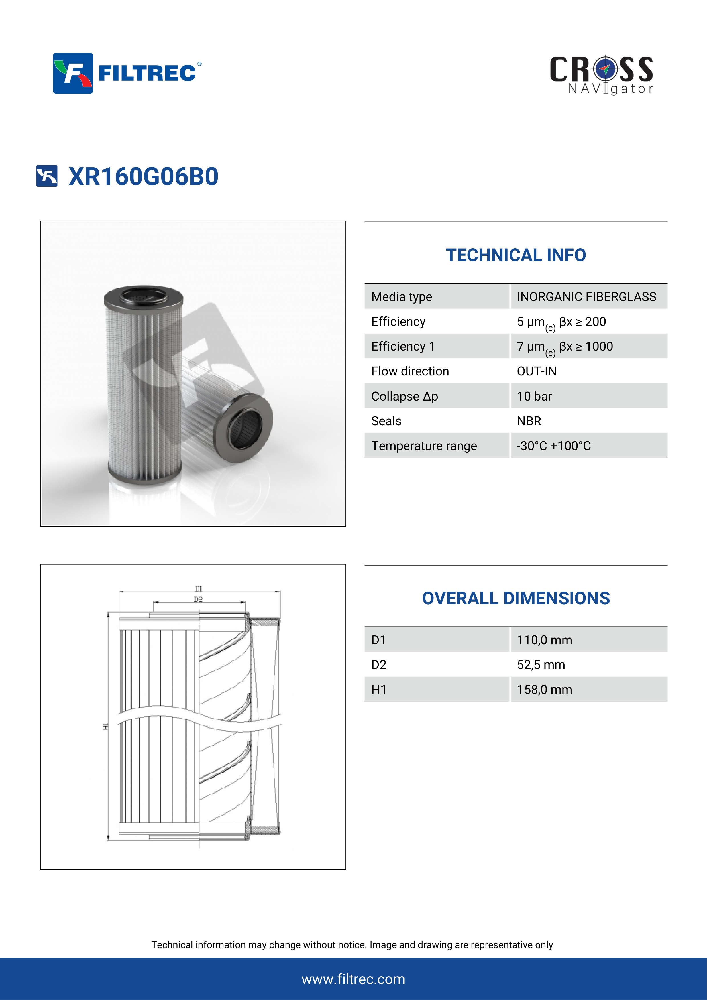 Genuine Filtrec XR160G06B0. This Filtrec element is designed to meet or exceed the quality and performance of brand OEM’s ensuring superior filtration performance and long-lasting durability.