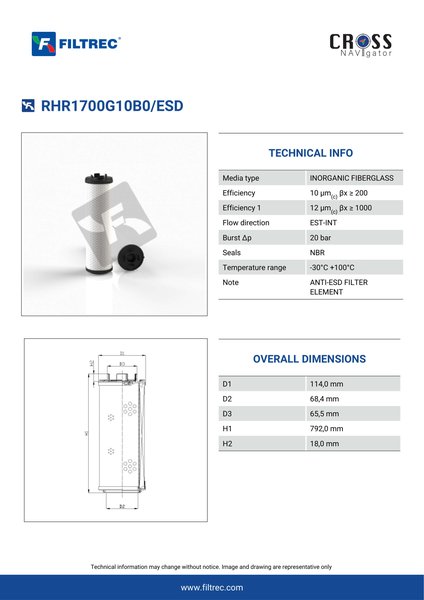 The efficiency of the element is shown using the Micron (µ) and Beta (β) ratings. The micron rating indicates the size of the particle being filtered and the beta rating the efficiency, calculated as 1/β.