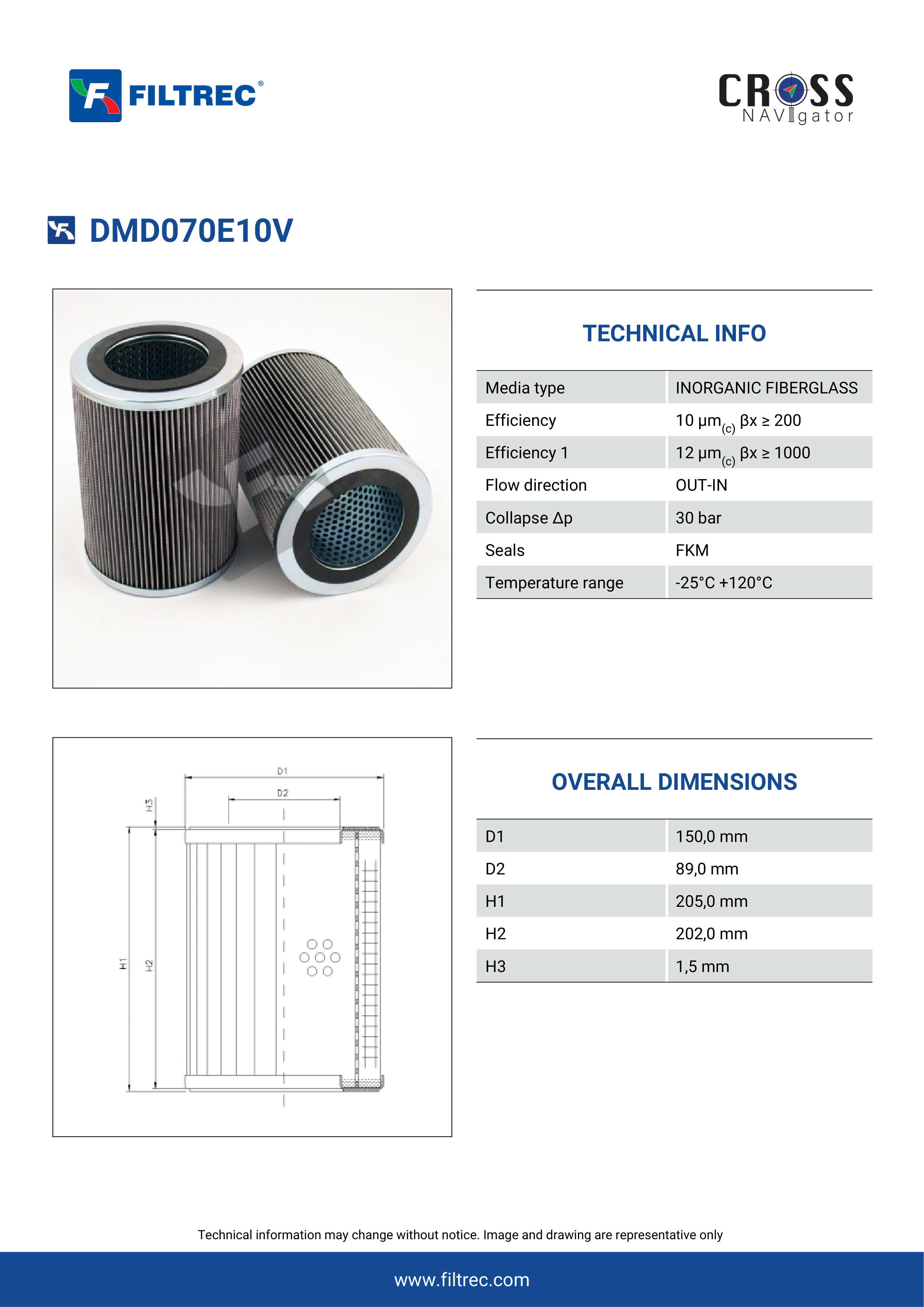 Genuine Filtrec DMD070E10V. This Filtrec element is designed to meet or exceed the quality and performance of brand OEM’s ensuring superior filtration performance and long-lasting durability.