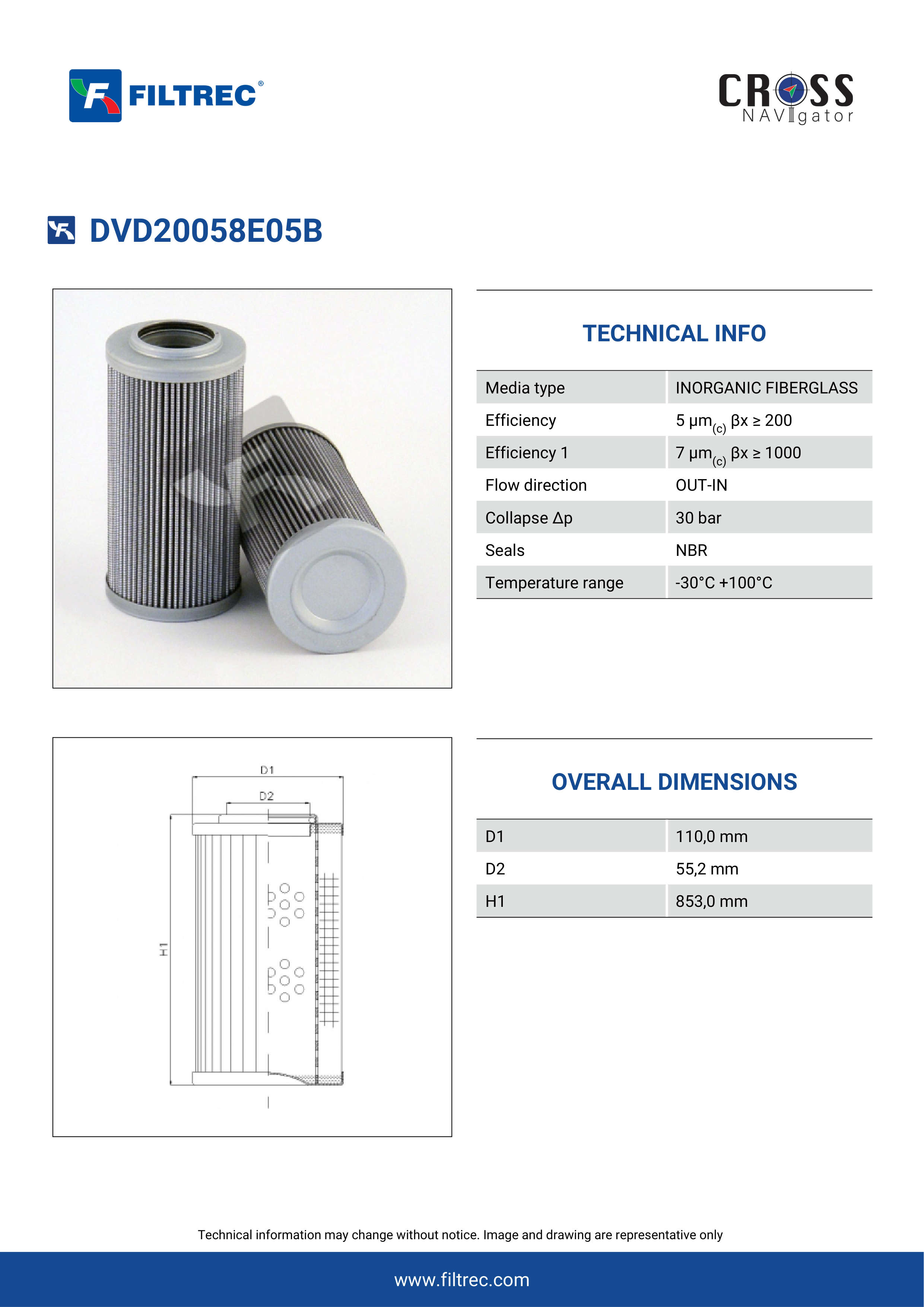 Genuine Filtrec DVD20058E05B. This Filtrec element is designed to meet or exceed the quality and performance of brand OEM’s ensuring superior filtration performance and long-lasting durability.Engineered with their high performance media and a durable design, the DVD20058E05B provides reliable and consistent performance over its lifespan, even in harsh operating environments. When you order from FilterFinder, you can trust that you are getting a reliable and high-quality replacement filter that will keep your system running smoothly.