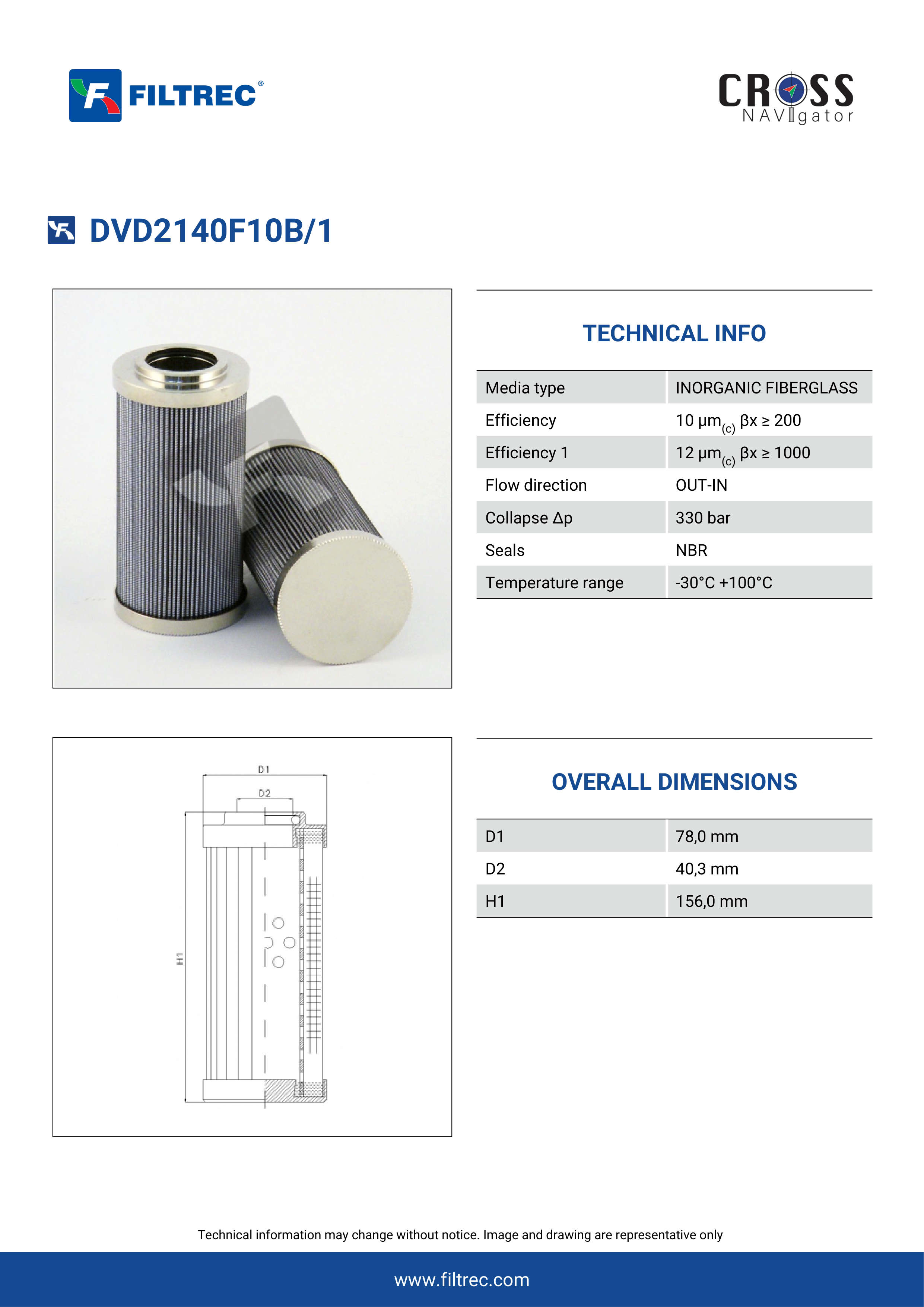Genuine Filtrec DVD2140F10B/1. This Filtrec element is designed to meet or exceed the quality and performance of brand OEM’s ensuring superior filtration performance and long-lasting durability.
