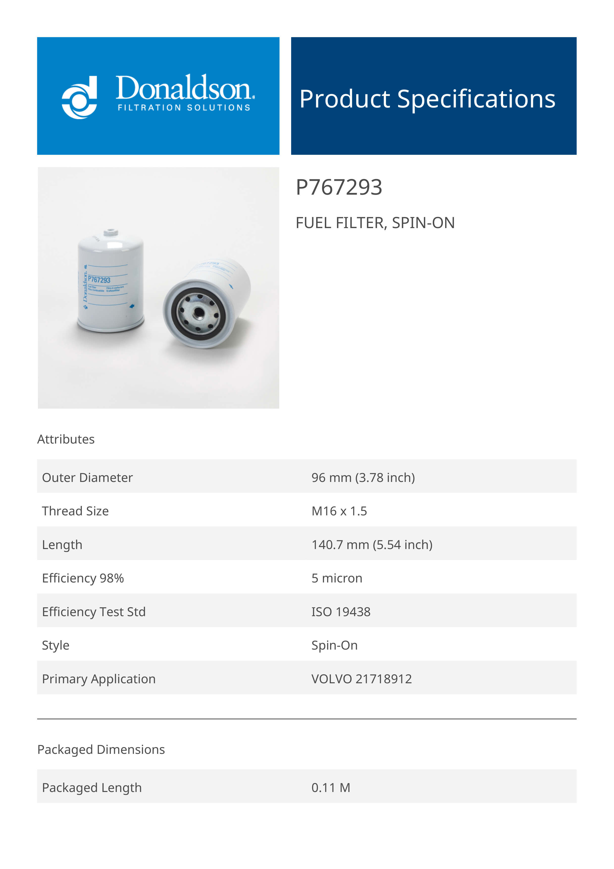 Donaldson P767293 Fuel Filter, Spin-On | Replaces the Volvo 21718912