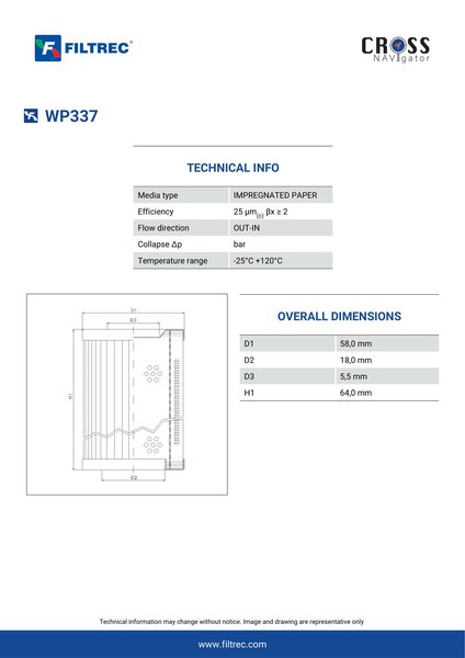 Genuine Filtrec WP337. This Filtrec element is designed to meet or exceed the quality and performance of brand OEM’s ensuring superior filtration performance and long-lasting durability.