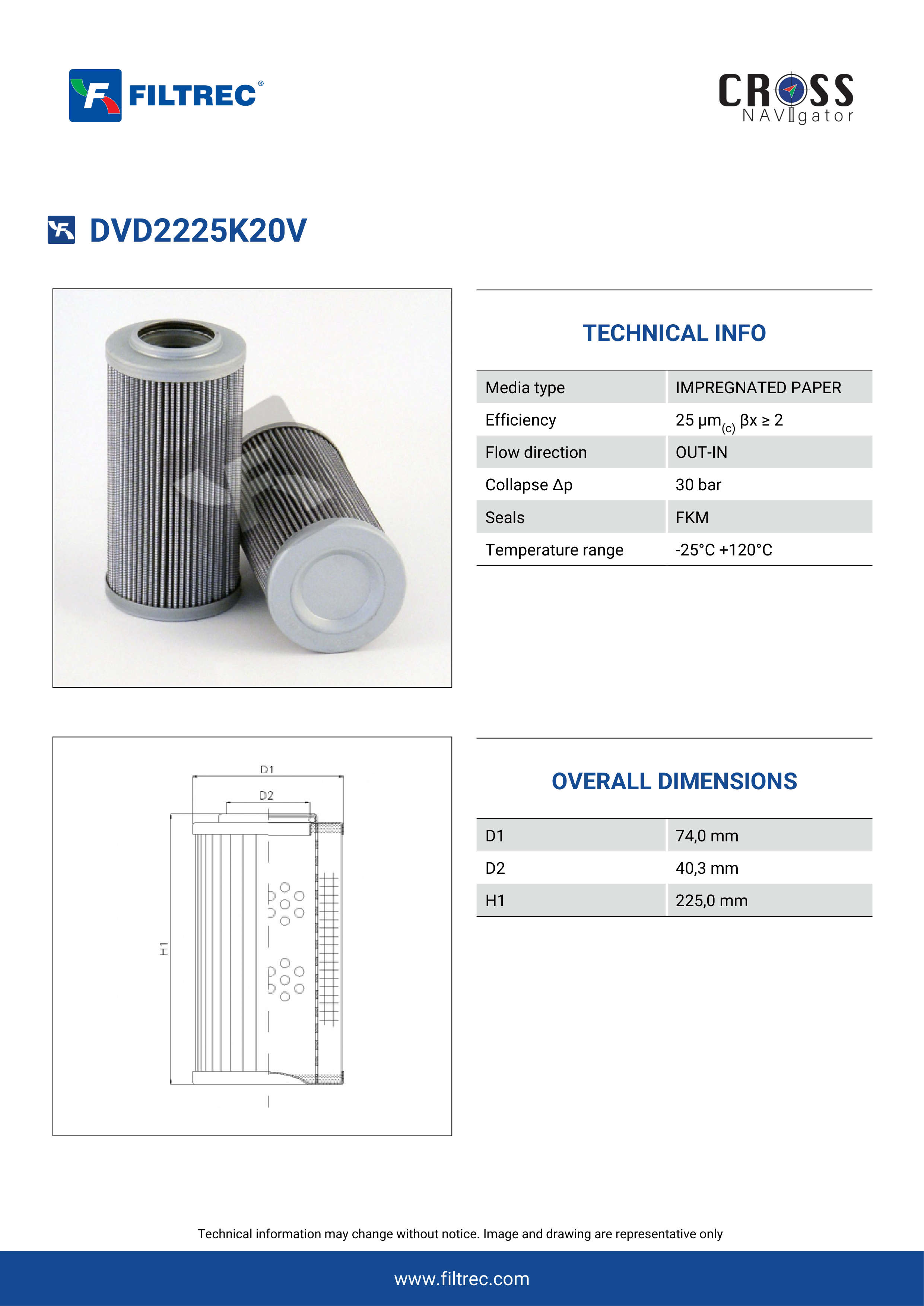 The efficiency of the element is shown using the Micron (µ) and Beta (β) ratings. The micron rating indicates the size of the particle being filtered and the beta rating the efficiency, calculated as 1/β.