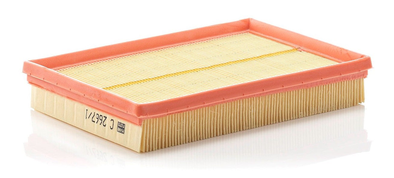 High-quality MANN-FILTER air filters for clean air intake and optimum protection for your engine, mass air flow sensor & other sensitive components / They meet requirements of modern engine technology. Highest dirt holding capacity and dirt separation efficiency, low flow resistance and high pleat stability ensure functional reliability during the entire service interval.