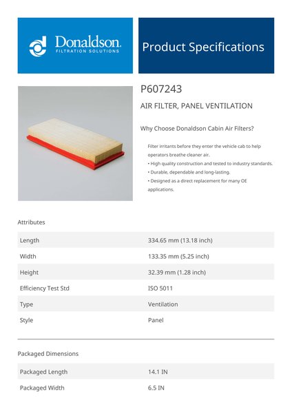 Why Choose Donaldson Cabin Air Filters?Filter irritants before they enter the vehicle cab to help operators breathe cleaner air.