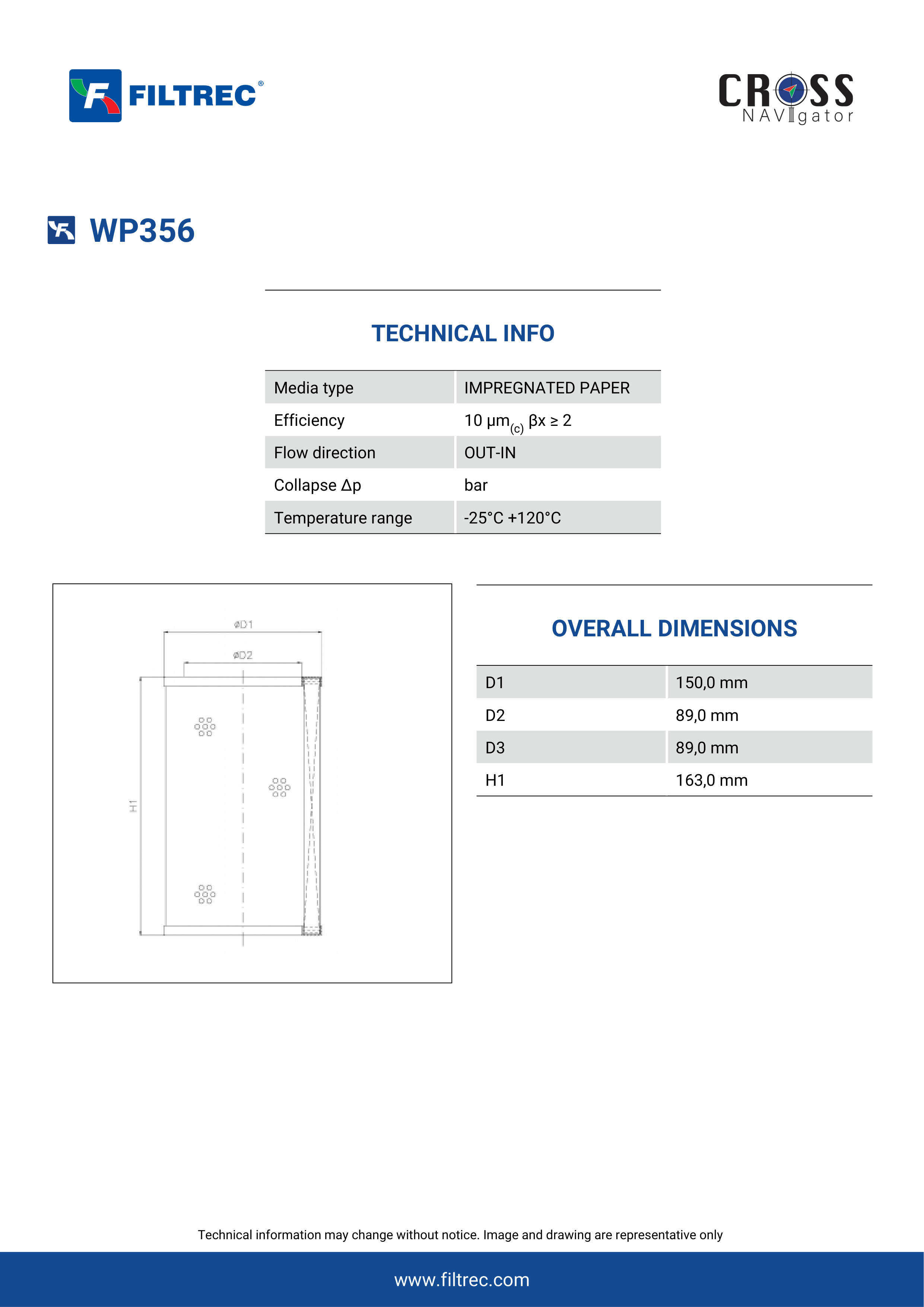 Genuine Filtrec WP356. This Filtrec element is designed to meet or exceed the quality and performance of brand OEM’s ensuring superior filtration performance and long-lasting durability.