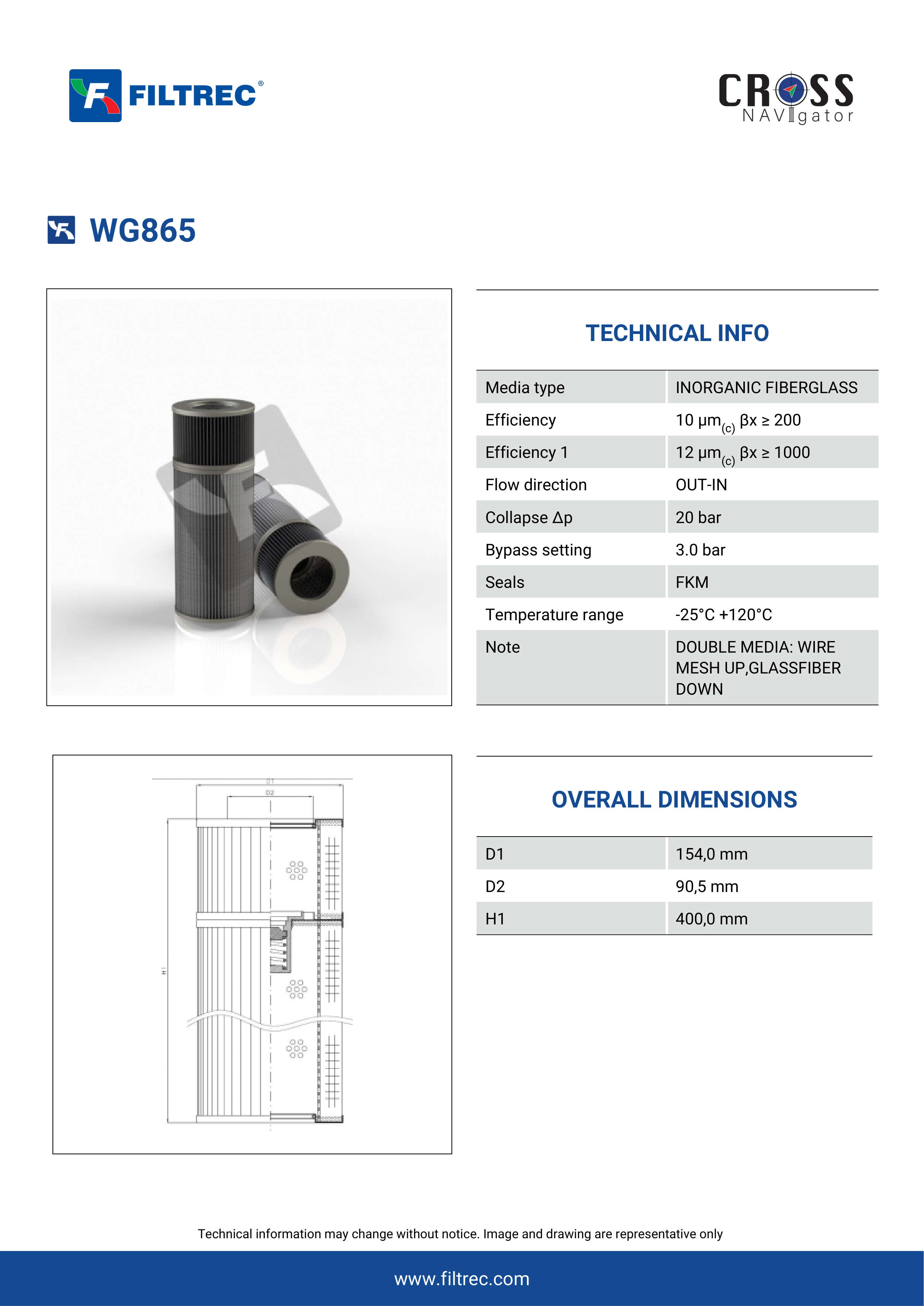 The efficiency of the element is shown using the Micron (µ) and Beta (β) ratings. The micron rating indicates the size of the particle being filtered and the beta rating the efficiency, calculated as 1/β.