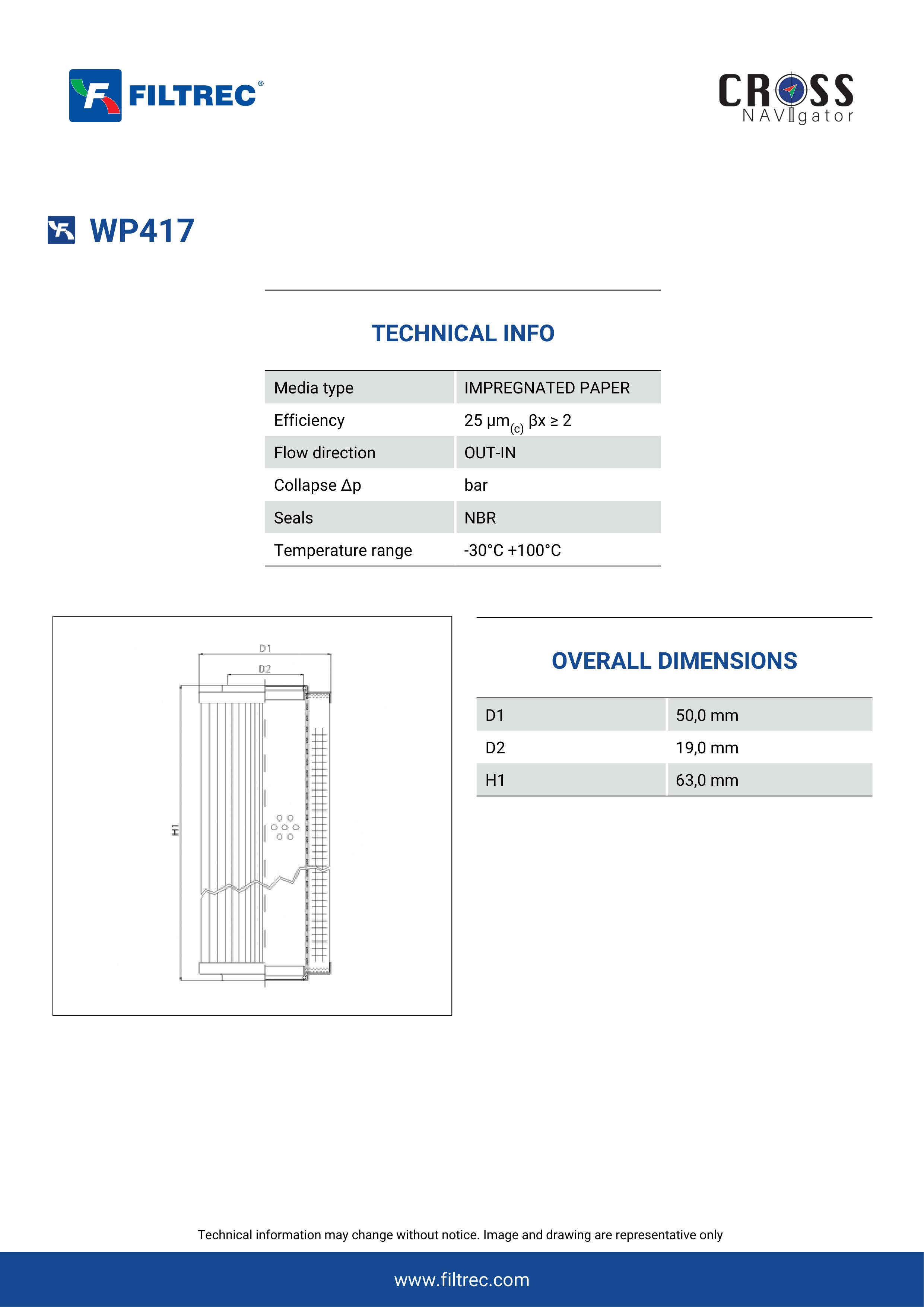 The efficiency of the element is shown using the Micron (µ) and Beta (β) ratings. The micron rating indicates the size of the particle being filtered and the beta rating the efficiency, calculated as 1/β.
