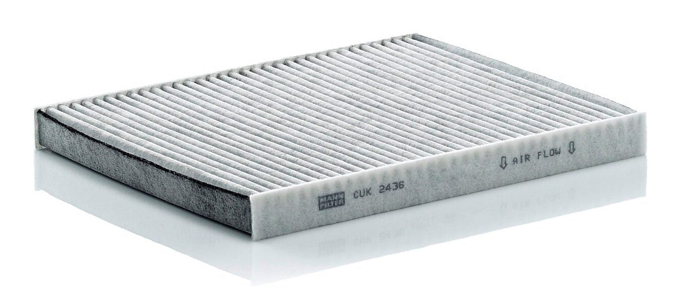 High-quality MANN-FILTER cabin filters with active carbon - nearly 100% protection from particles like pollen, diesel soot & tyre abrasion / Additional protection from harmful gases & unpleasant odour. The trated highly-effective activated carbon gives protection against harmful gases such as ozone, nitrogen oxide or sulphur dioxide and eliminates unpleasant odours during the entire service interval.