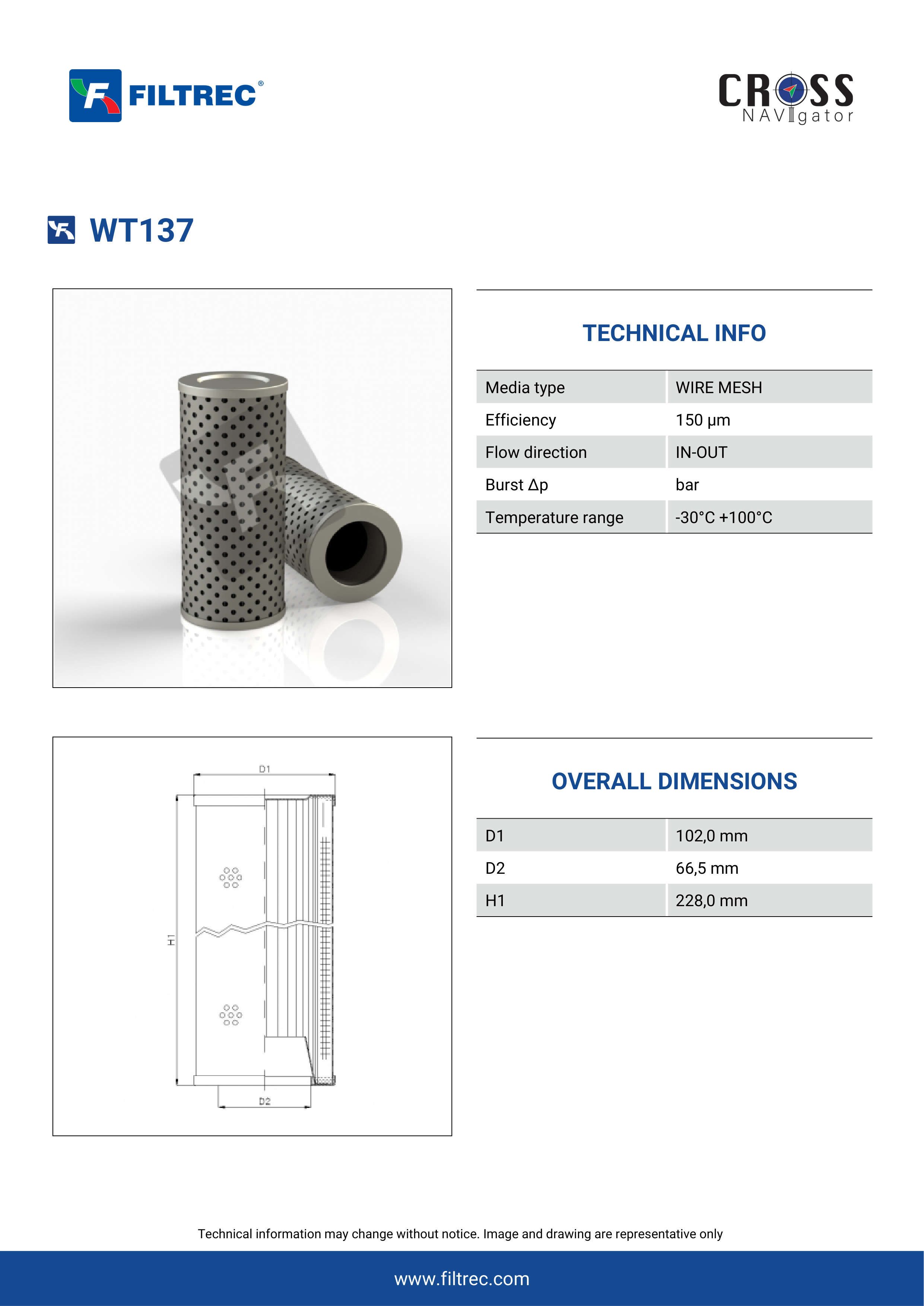 Genuine Filtrec WT137. This Filtrec element is designed to meet or exceed the quality and performance of brand OEM’s ensuring superior filtration performance and long-lasting durability.