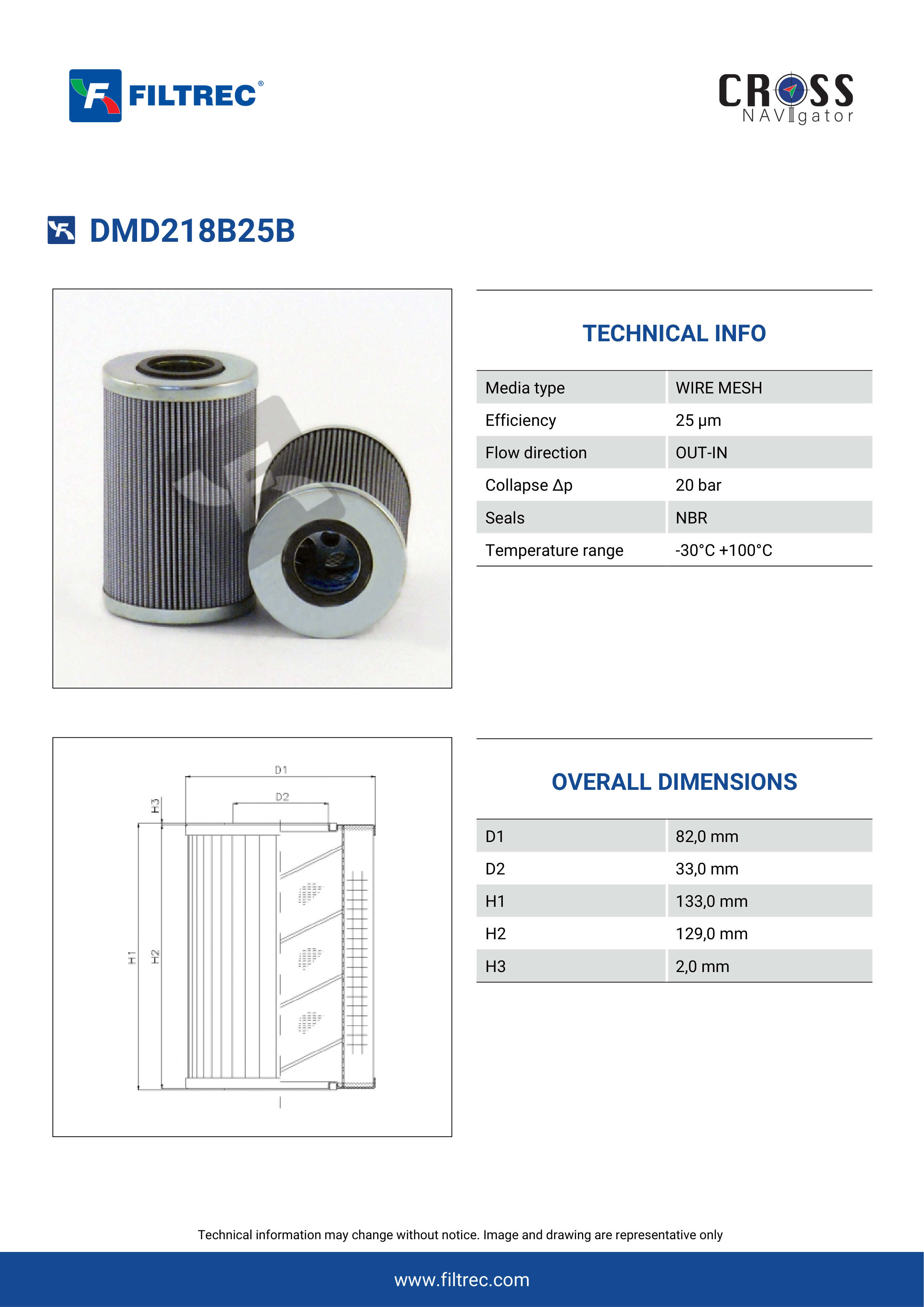 Genuine Filtrec DMD218B25B. This Filtrec element is designed to meet or exceed the quality and performance of brand OEM’s ensuring superior filtration performance and long-lasting durability.