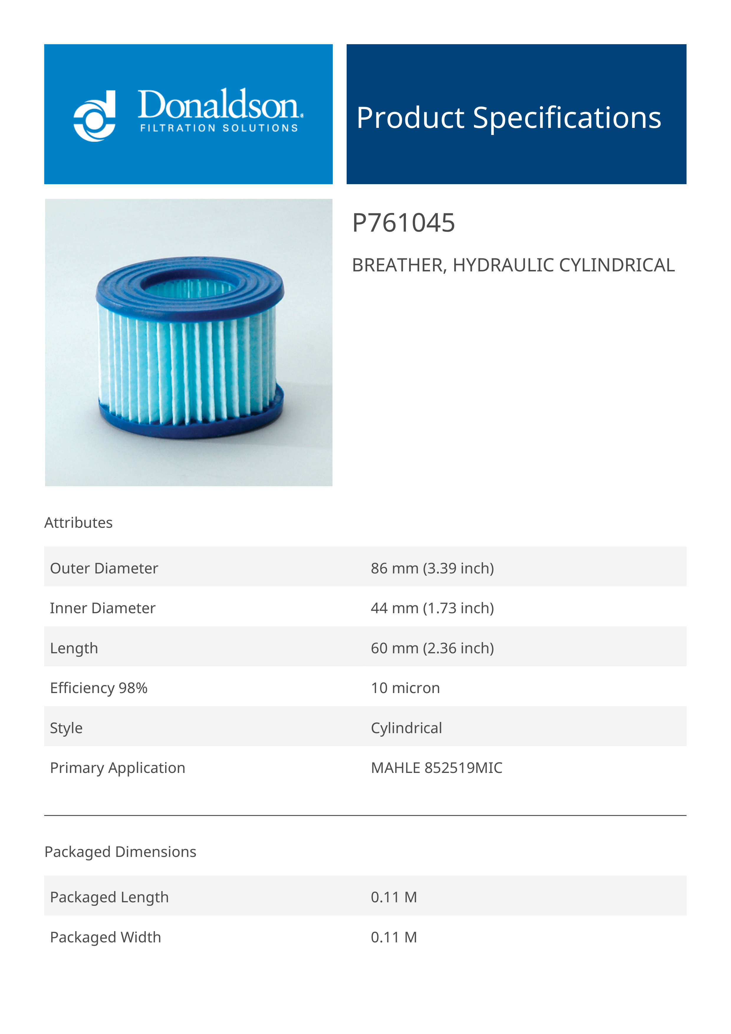 Donaldson P761045 Replaces the Mahle 852519MIC