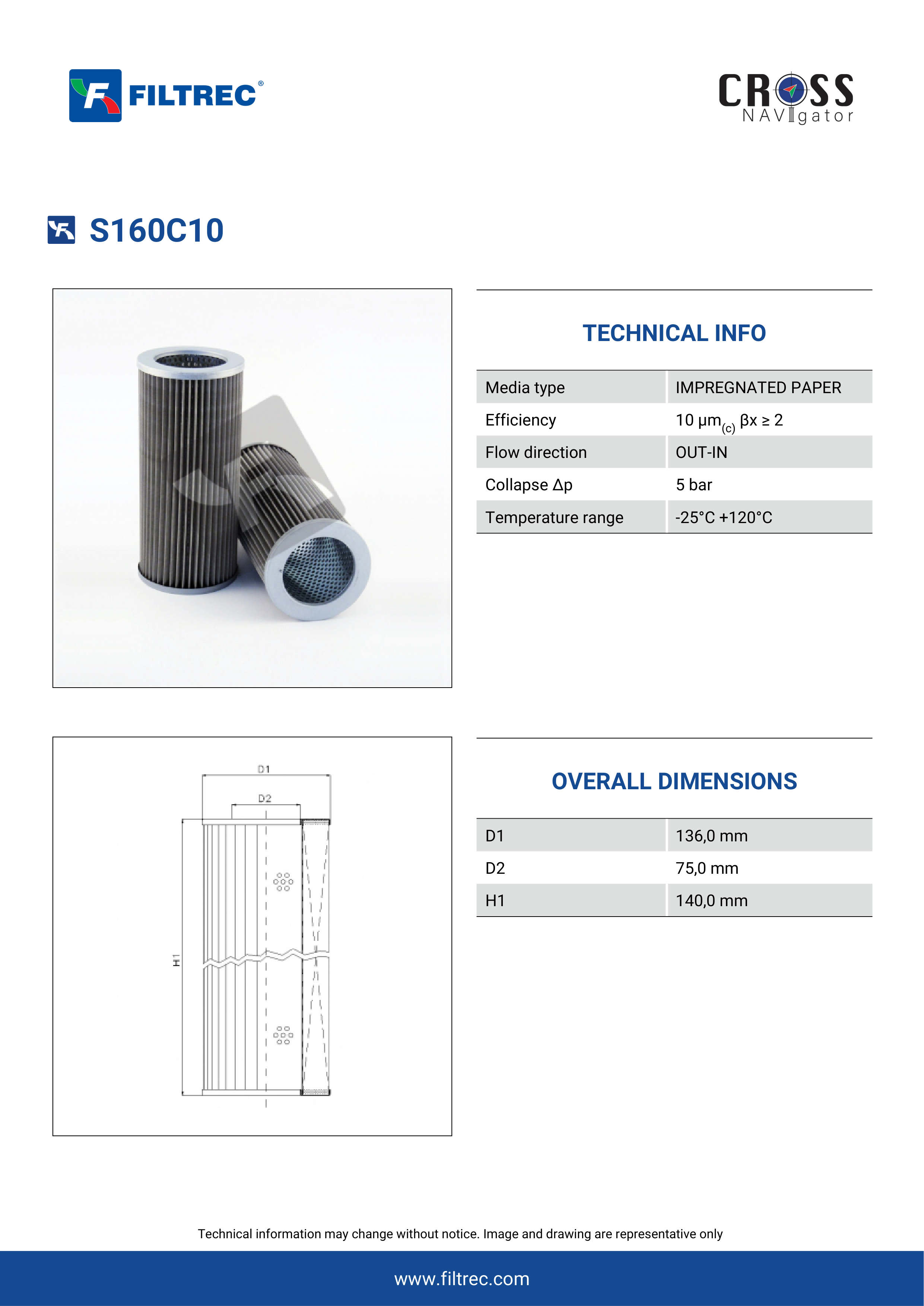 Genuine Filtrec S160C10. This Filtrec element is designed to meet or exceed the quality and performance of brand OEM’s ensuring superior filtration performance and long-lasting durability.