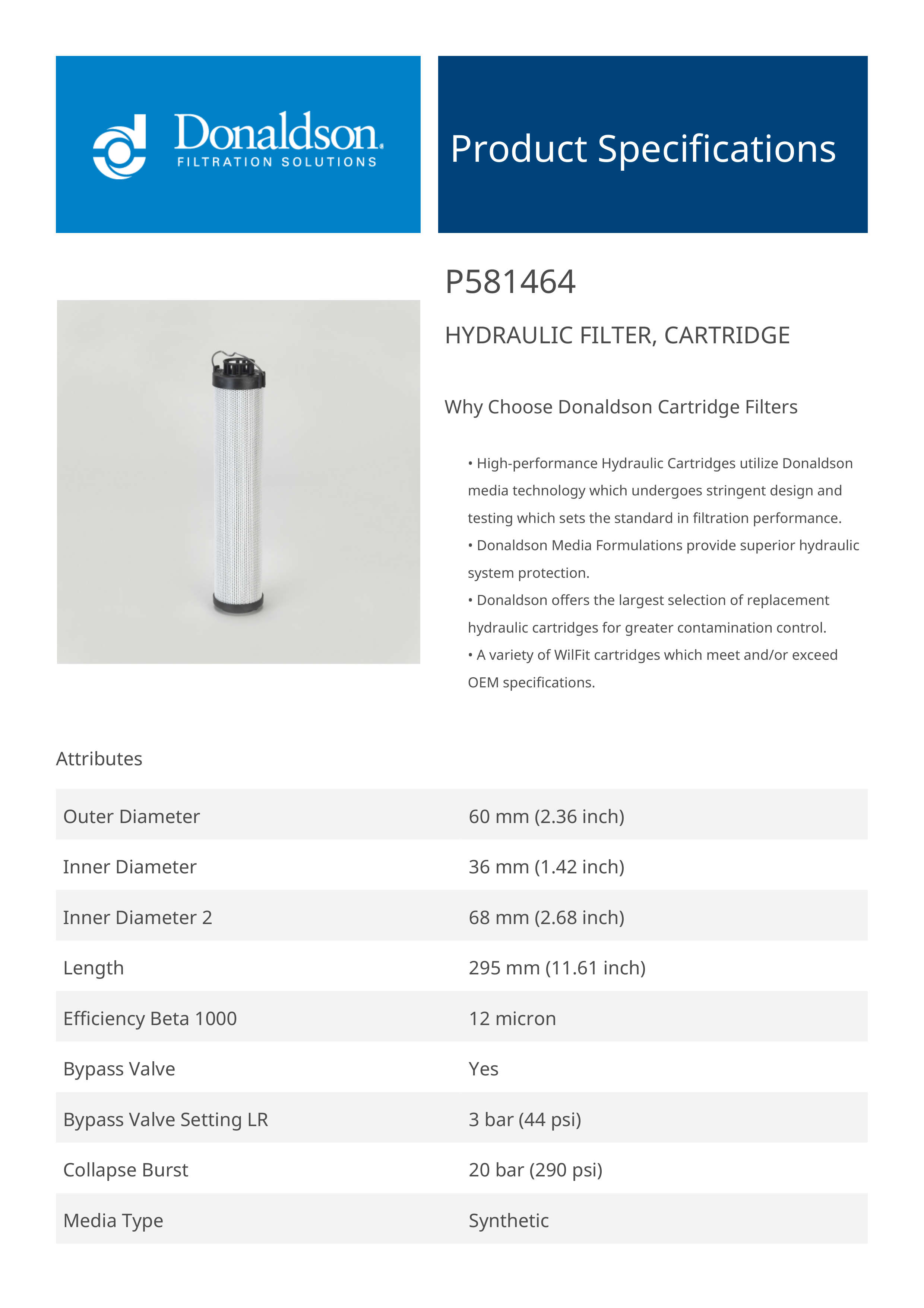 Donaldson P581464 Hydraulic Filter, Cartridge | Replaces the Parker 939782Q