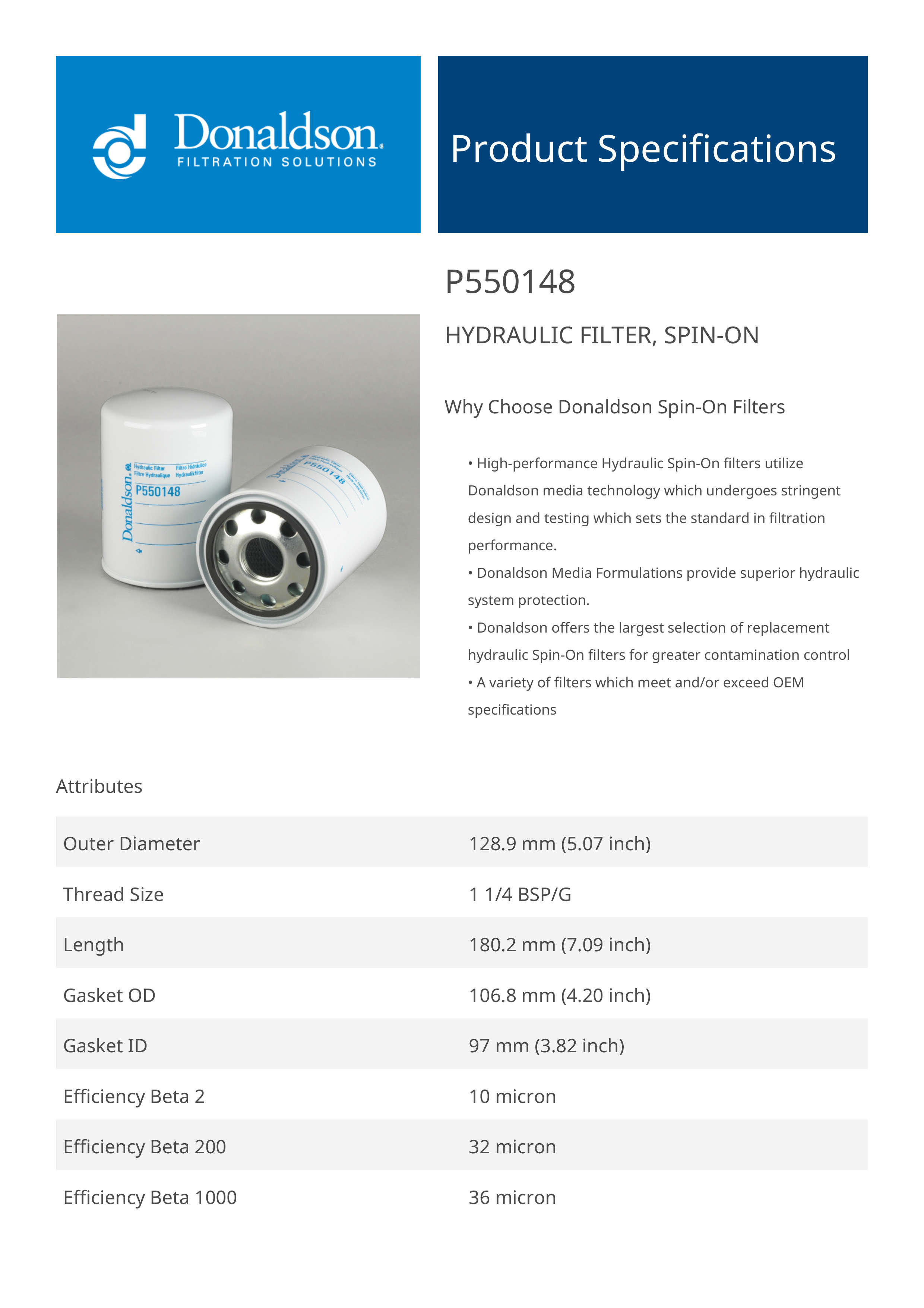 The efficiency of the element is shown using the Micron (µ) and Beta (β) ratings. The micron rating indicates the size of the particle being filtered and the beta rating the efficiency, calculated as 1/β.