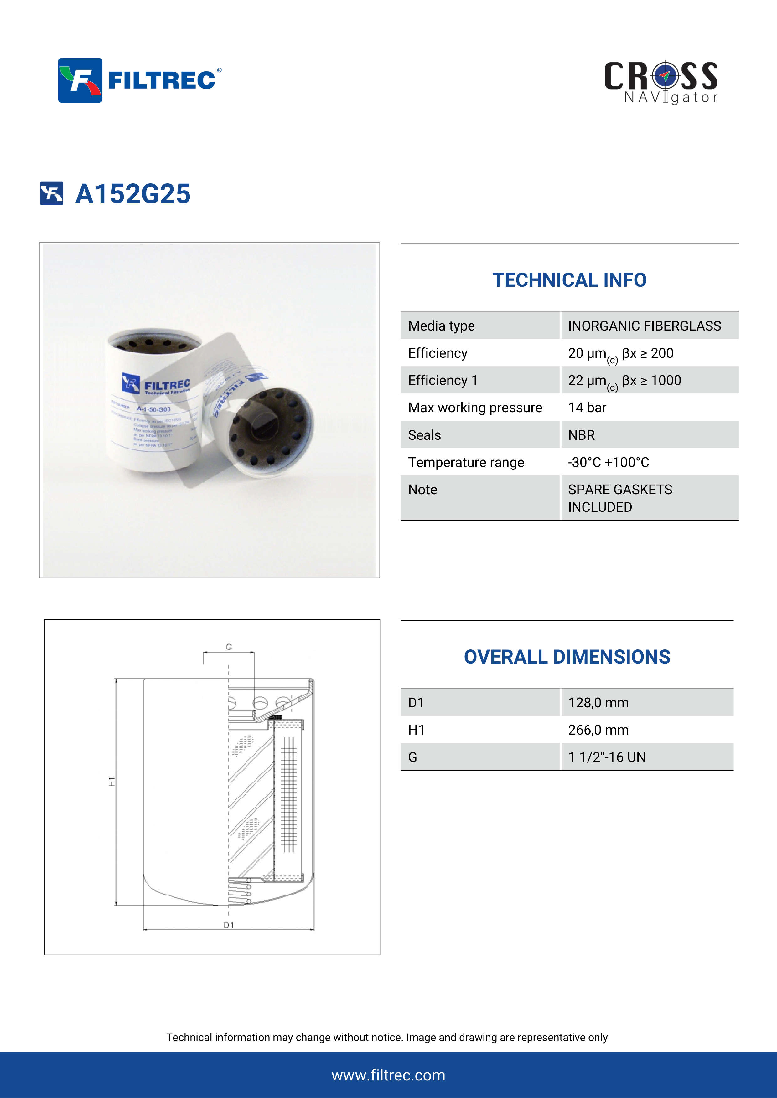 The efficiency of the element is shown using the Micron (µ) and Beta (β) ratings. The micron rating indicates the size of the particle being filtered and the beta rating the efficiency, calculated as 1/β.