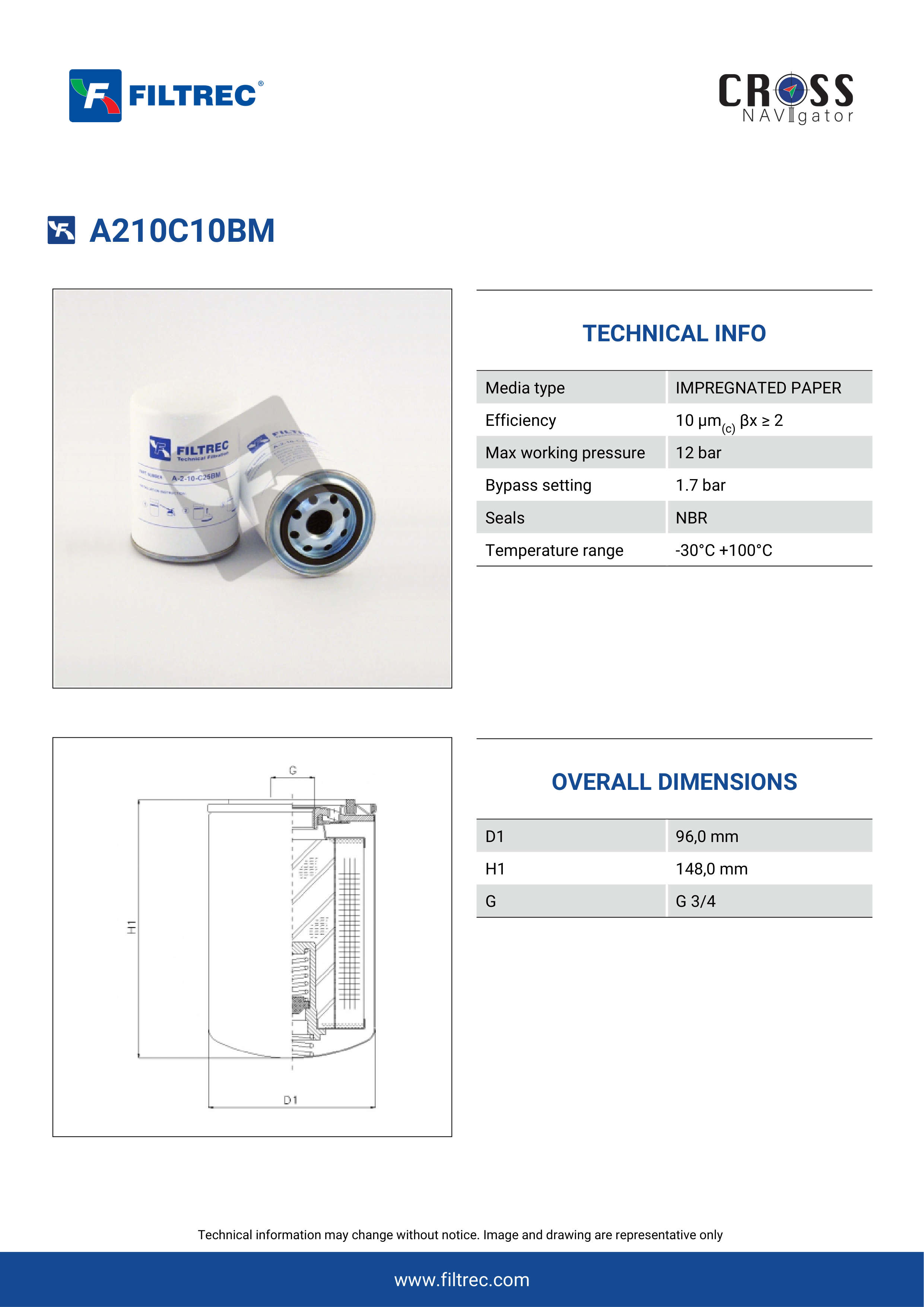 Genuine Filtrec A210C10BM. This Filtrec element is designed to meet or exceed the quality and performance of brand OEM’s ensuring superior filtration performance and long-lasting durability.Engineered with their high performance media and a durable design, the A210C10BM provides reliable and consistent performance over its lifespan, even in harsh operating environments. When you order from FilterFinder, you can trust that you are getting a reliable and high-quality replacement filter that will keep your system running smoothly.