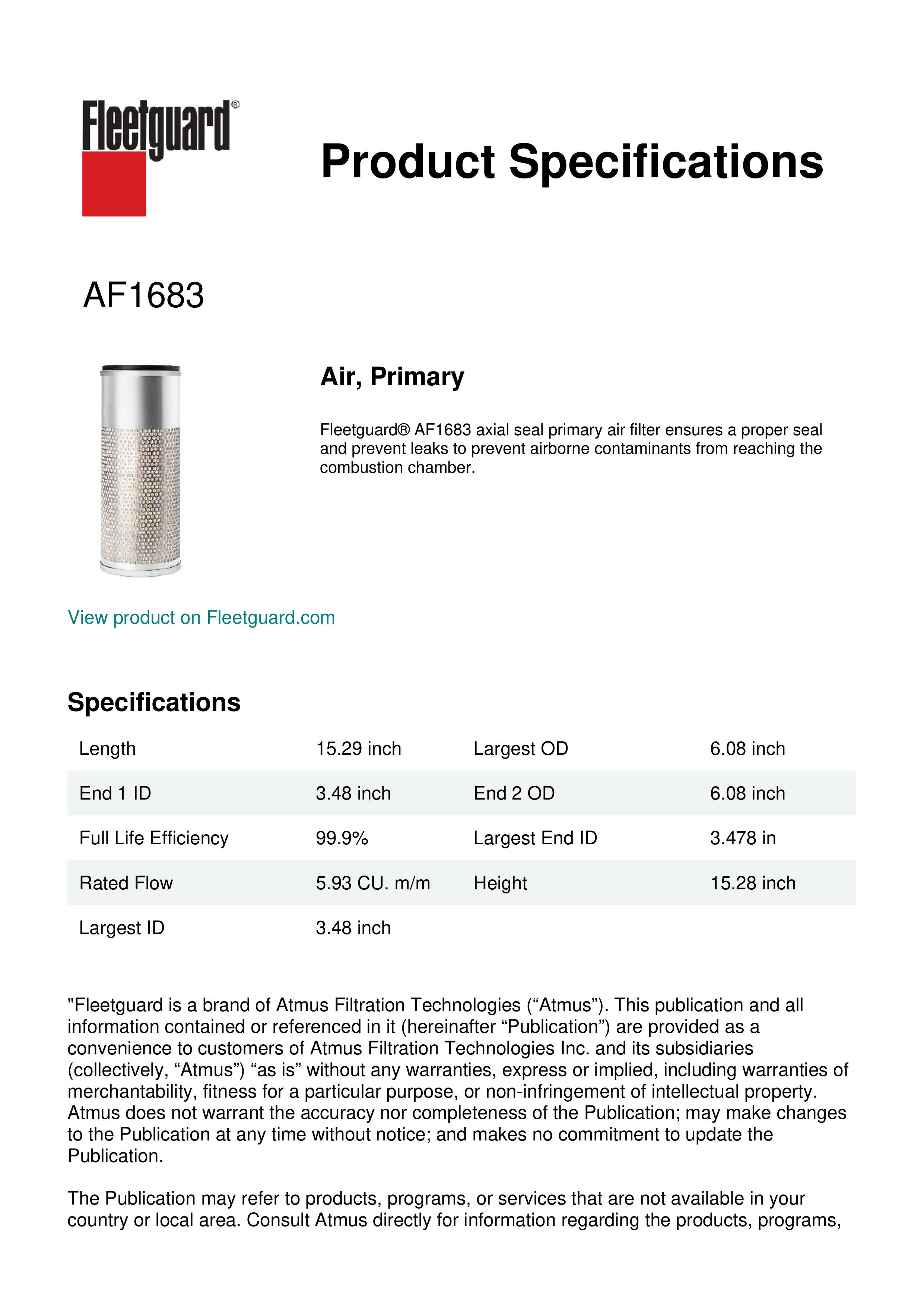 Fleetguard AF1683 Air, Primary