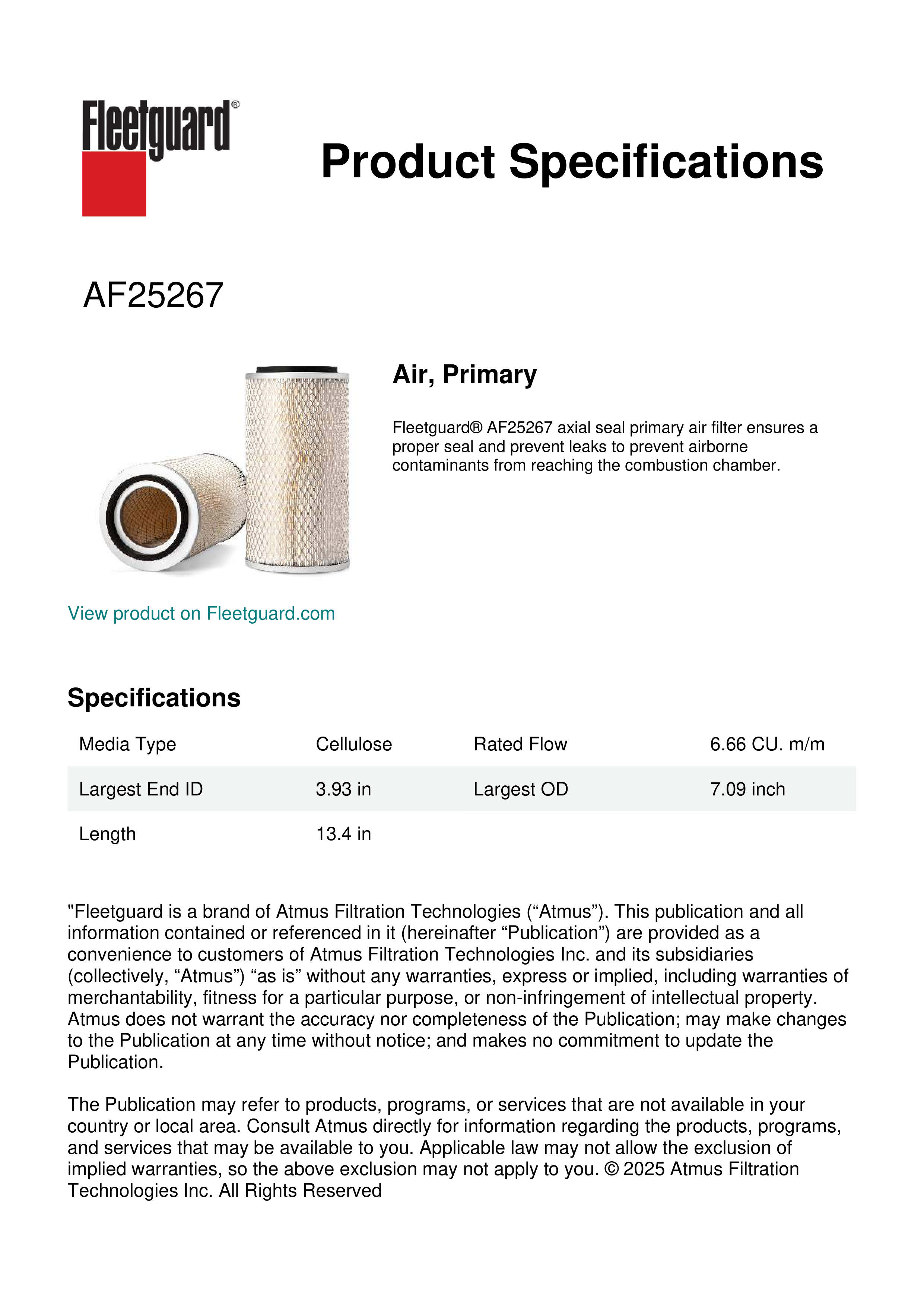 Fleetguard AF25267 Air, Primary