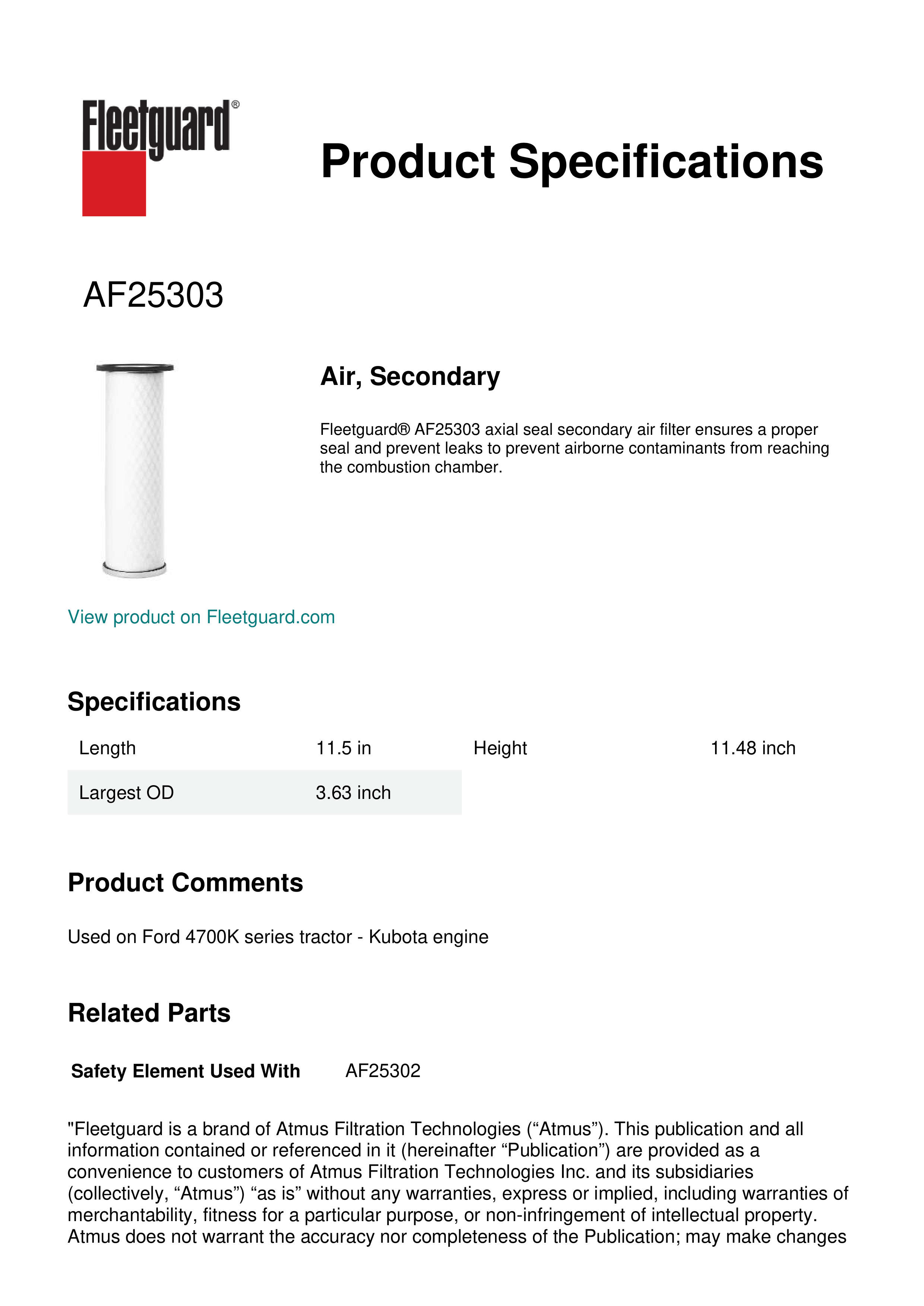 Fleetguard AF25303 Air, Secondary