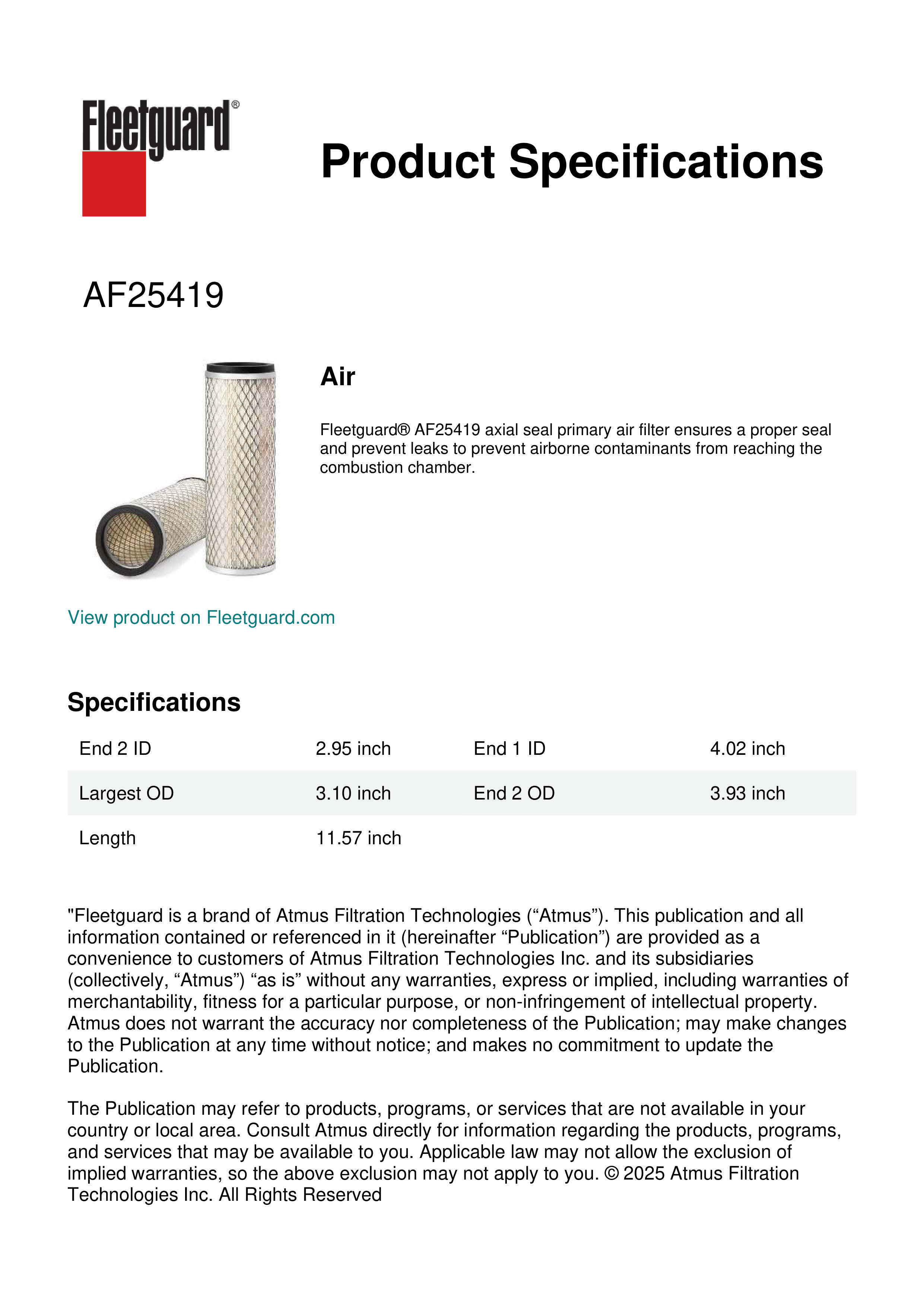 Fleetguard AF25419 Air